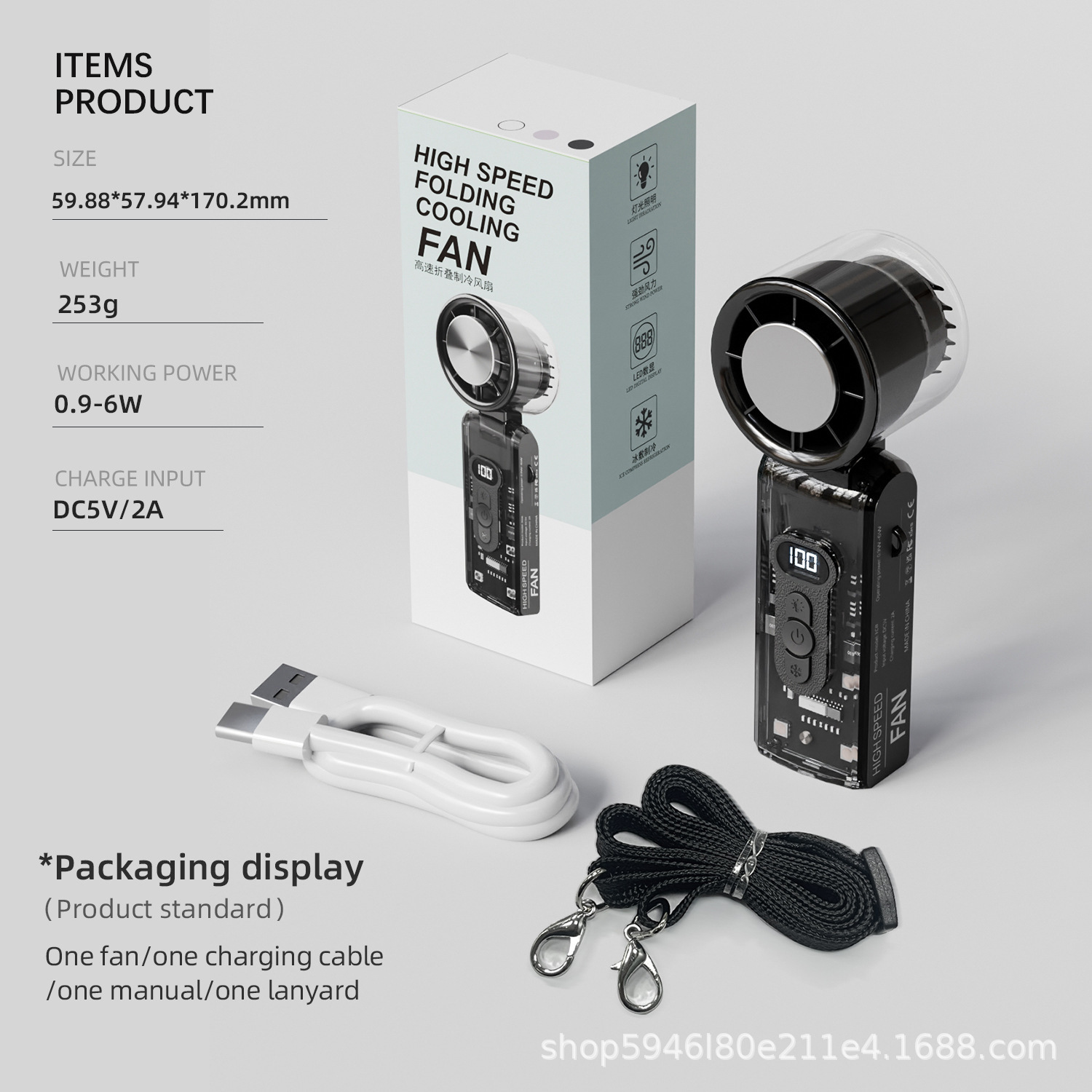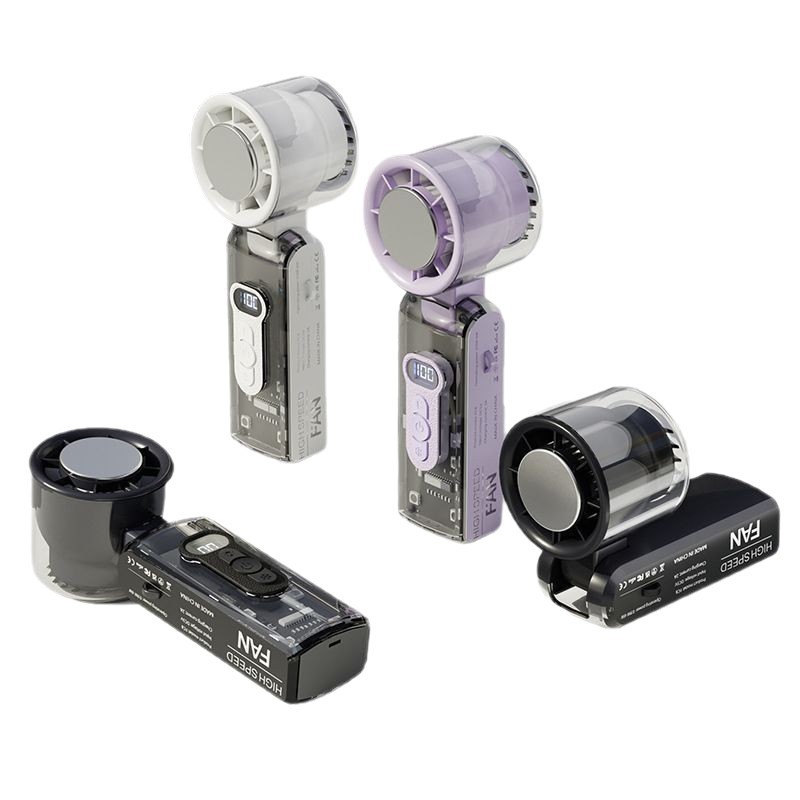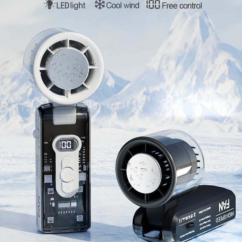 fc08新款高速折叠冰敷风扇透明机甲100档数显挂脖LED照明制冷风扇