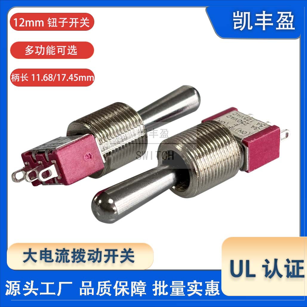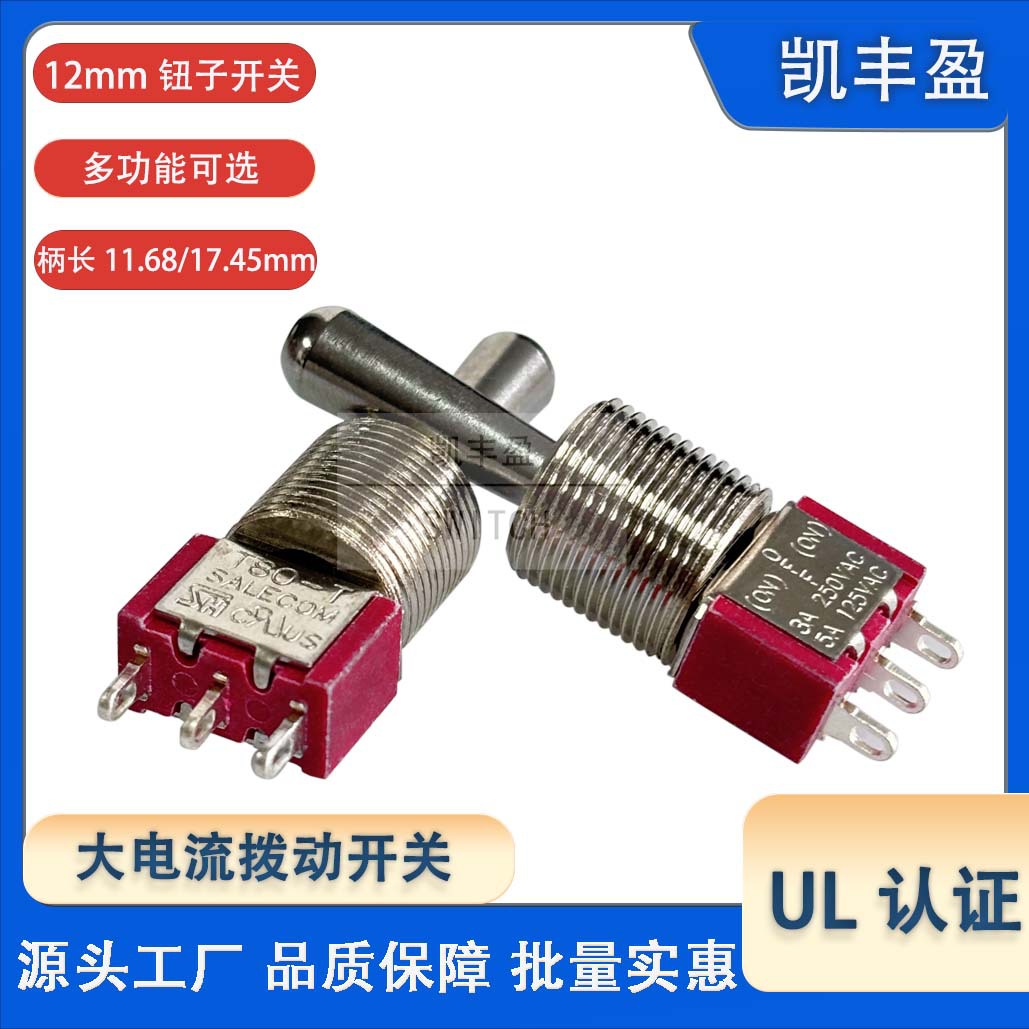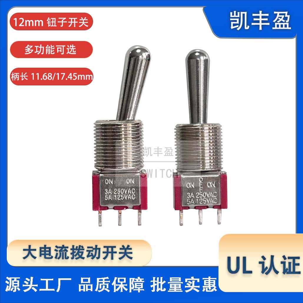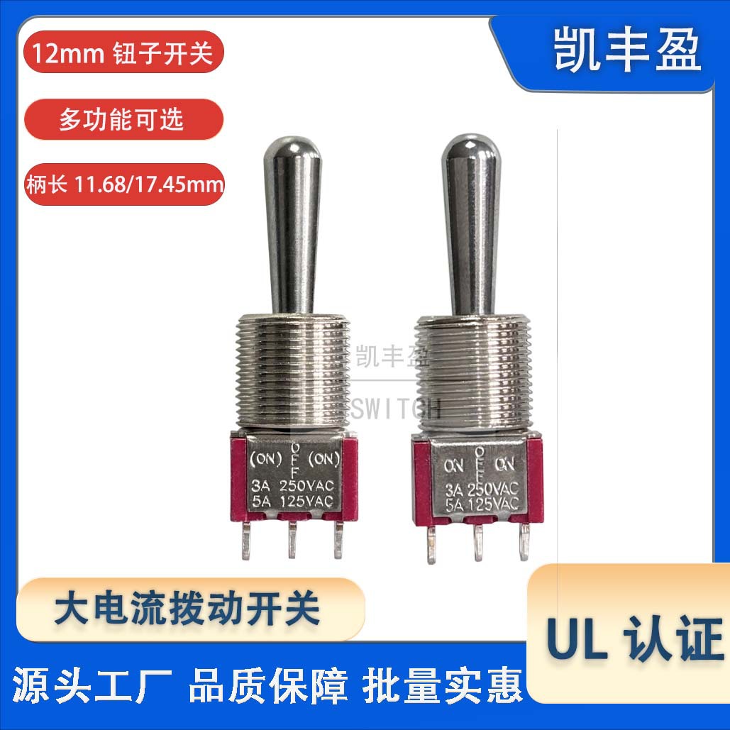 拨动开关12mm 航模手柄摇摆开关 三脚3P自锁复位 UL钮子开关T80-T
