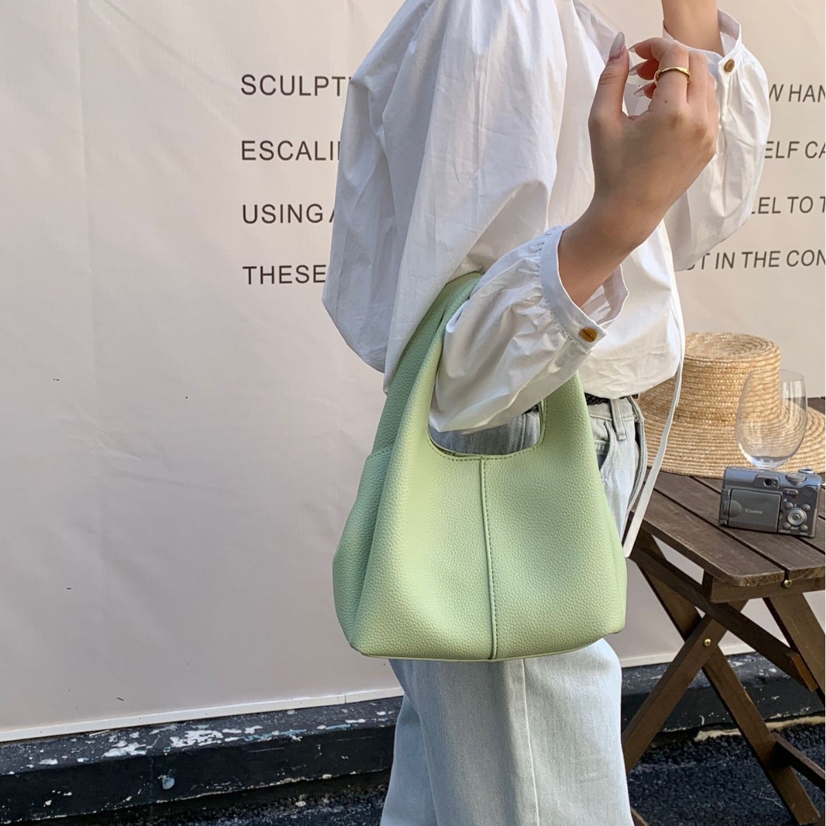2025新款跨境女包包菜篮子包时尚简约单肩手提包大容量斜挎水桶包