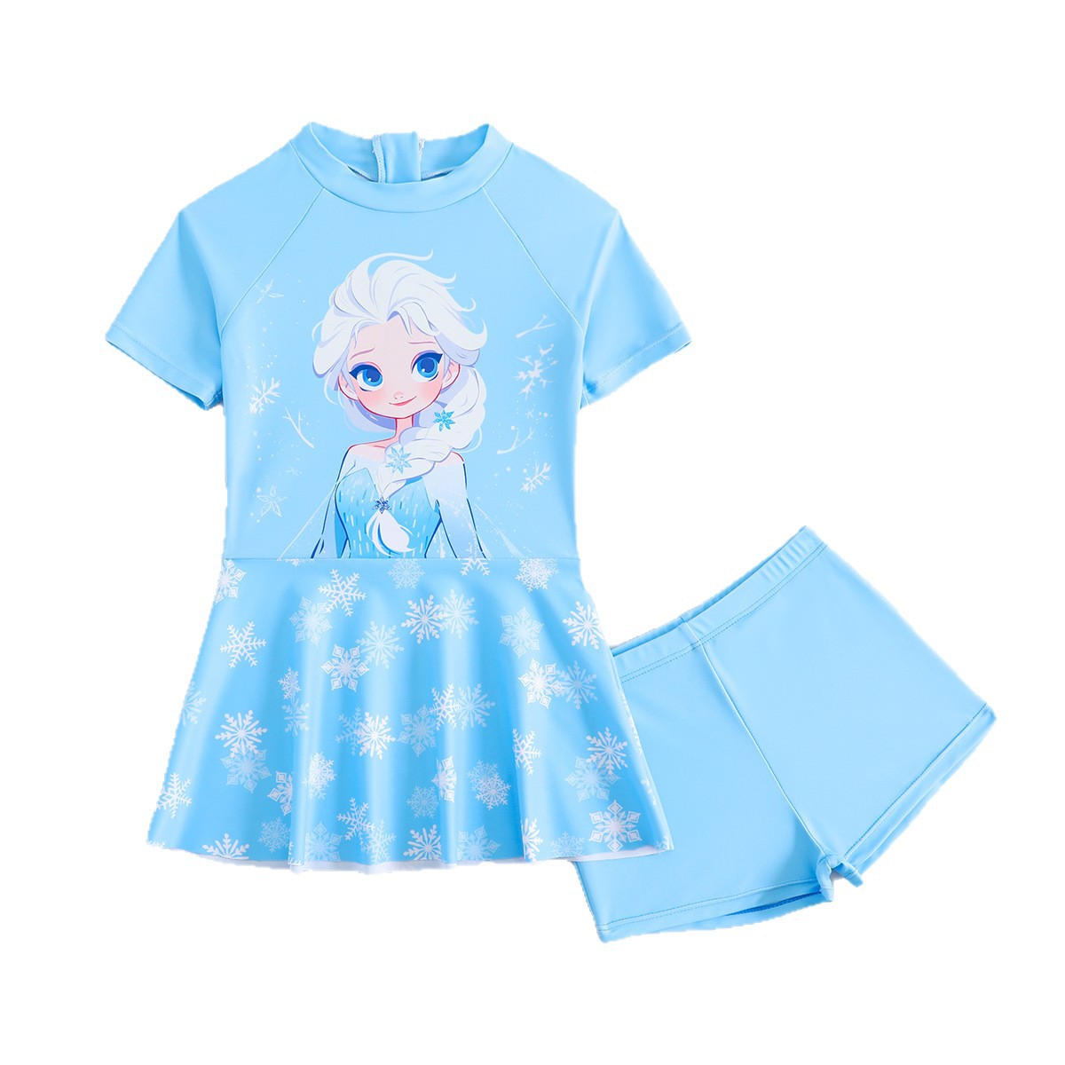 儿童泳衣夏季新款女童中小童连体裙卡通短袖分体印花泳装高弹透气