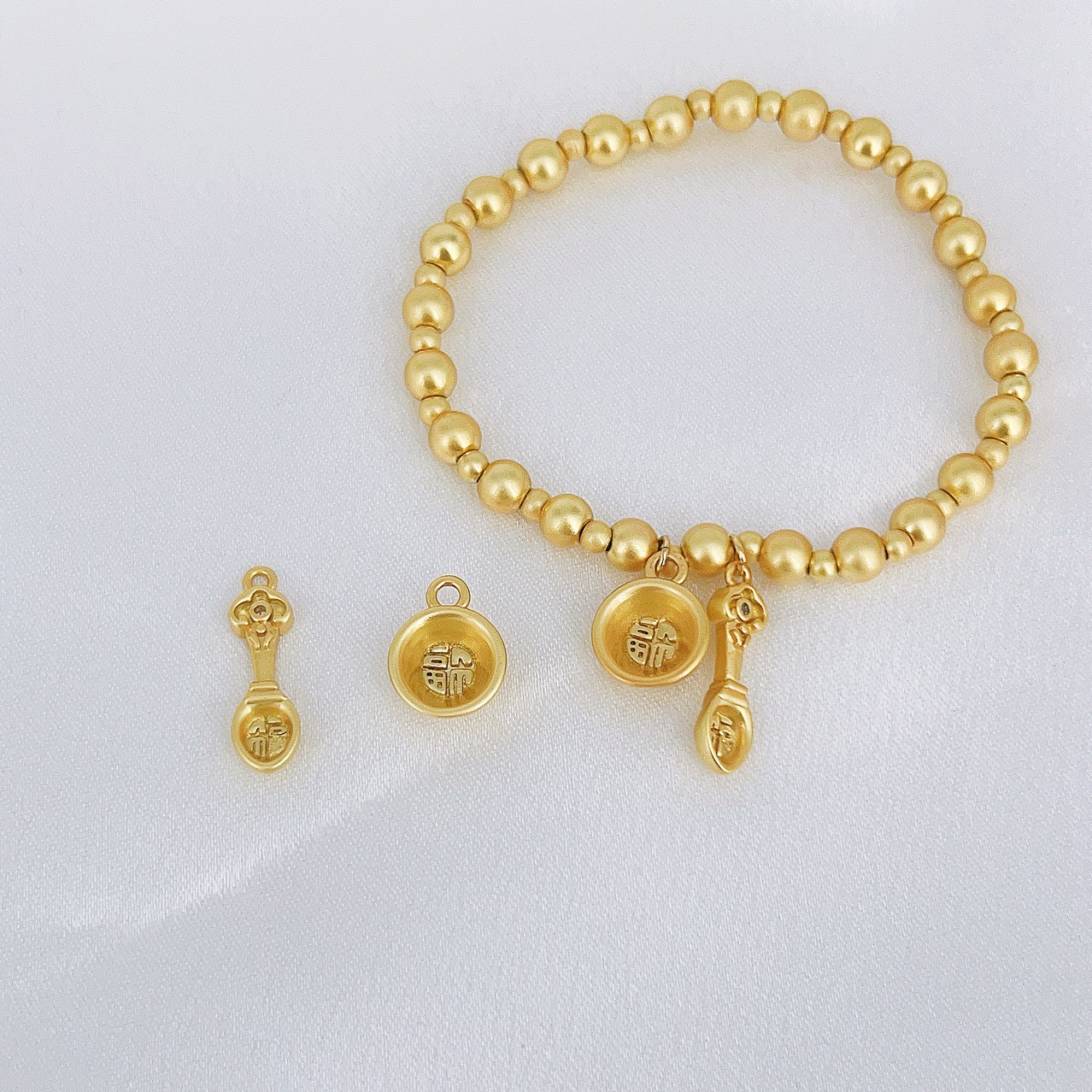 古法金沙金衣食无忧金碗金勺子吊坠diy手工饰品串珠编绳配件材料