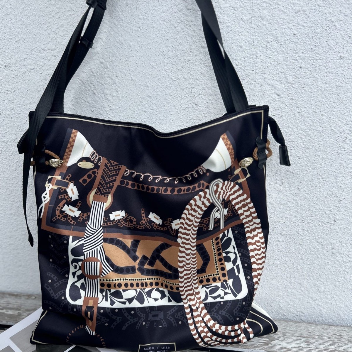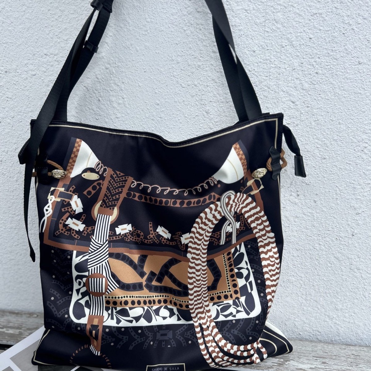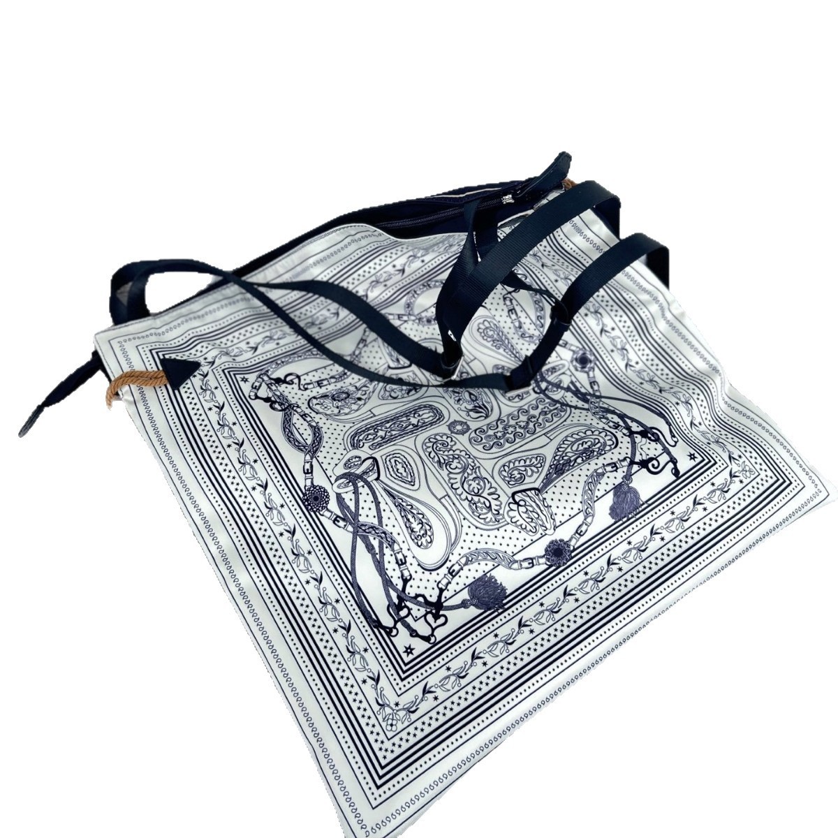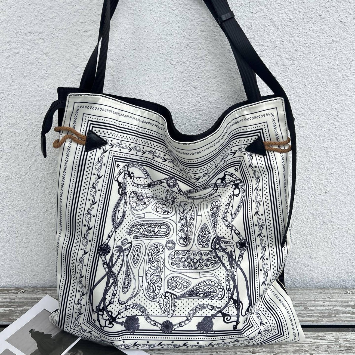 夏季新品小众复古绸缎面印花丝巾包时尚大容量托特包手提单肩包潮