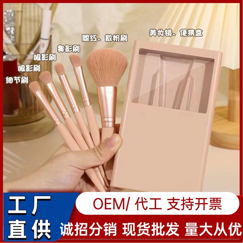厂家供应 盒装迷你小便携式化妆刷套装5支带镜子软毛美妆工具
