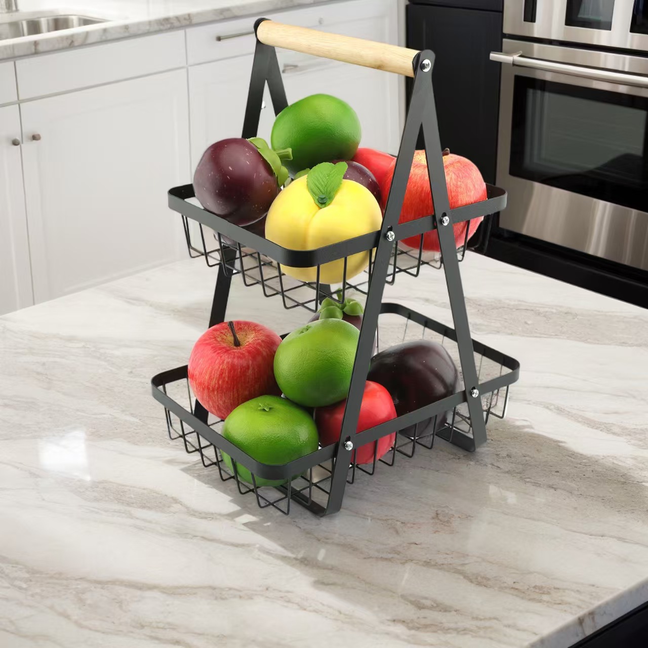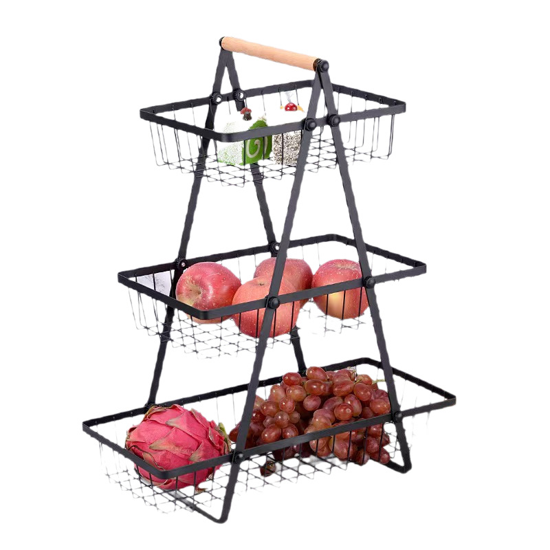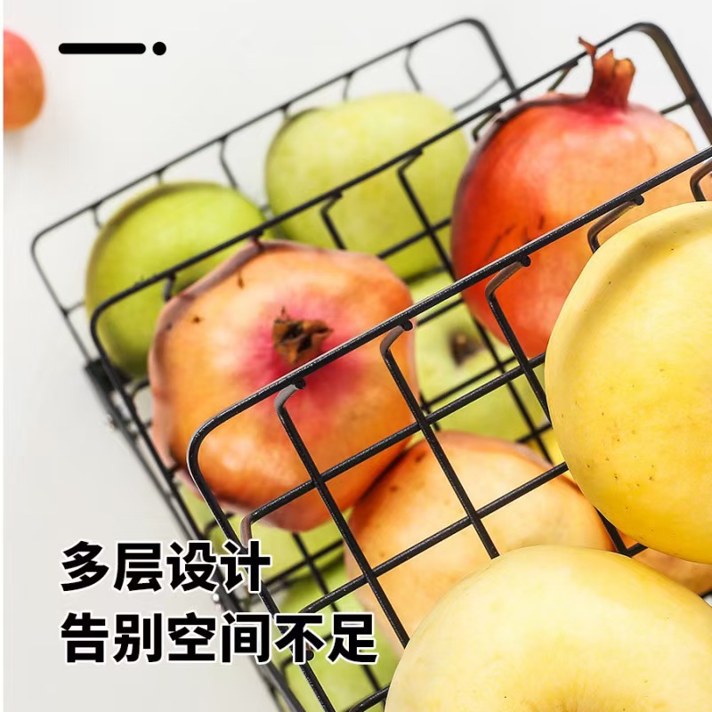 爆款可拆卸沥水双层水果篮木柄手提篮铁艺果篮厨房客厅置物收纳篮