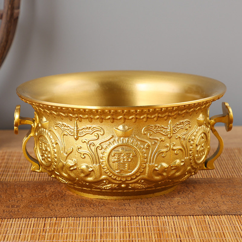 全铜聚宝盆摆件黄铜如意聚宝盆铜盆店铺零钱客厅玄关店铺开业礼品