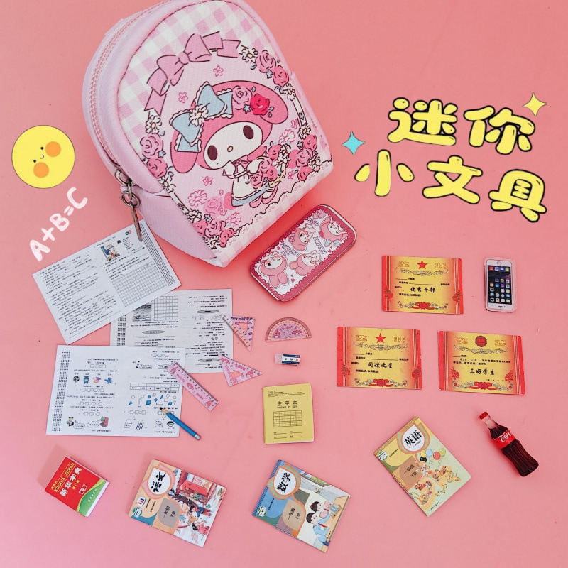 儿童迷你小文具女孩玩具小书包微缩可爱玩具仿真物品全套书本书包