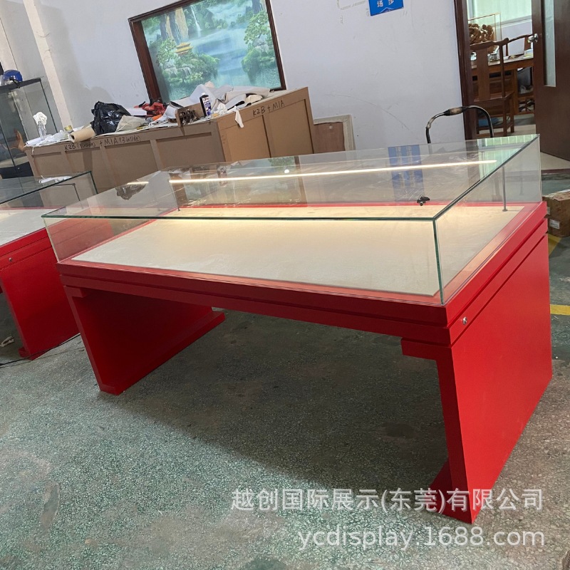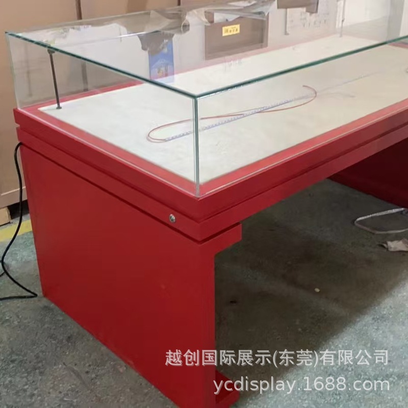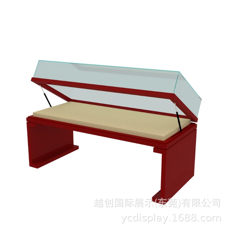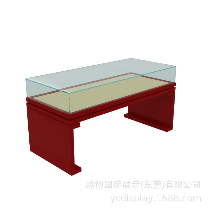 手动液压红色博物馆平柜【越创工厂矮柜定制】5面特色玻璃桌面柜