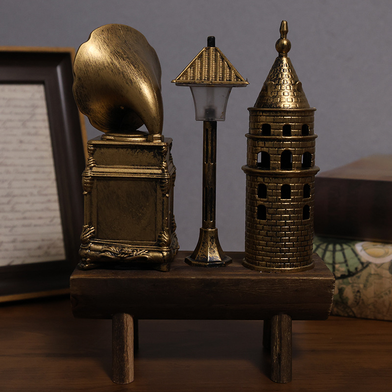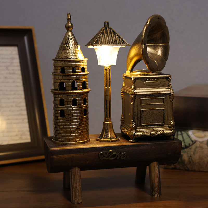 创意留声机小夜灯复古法式塑料桌面摆件装饰电视柜摄影小道具