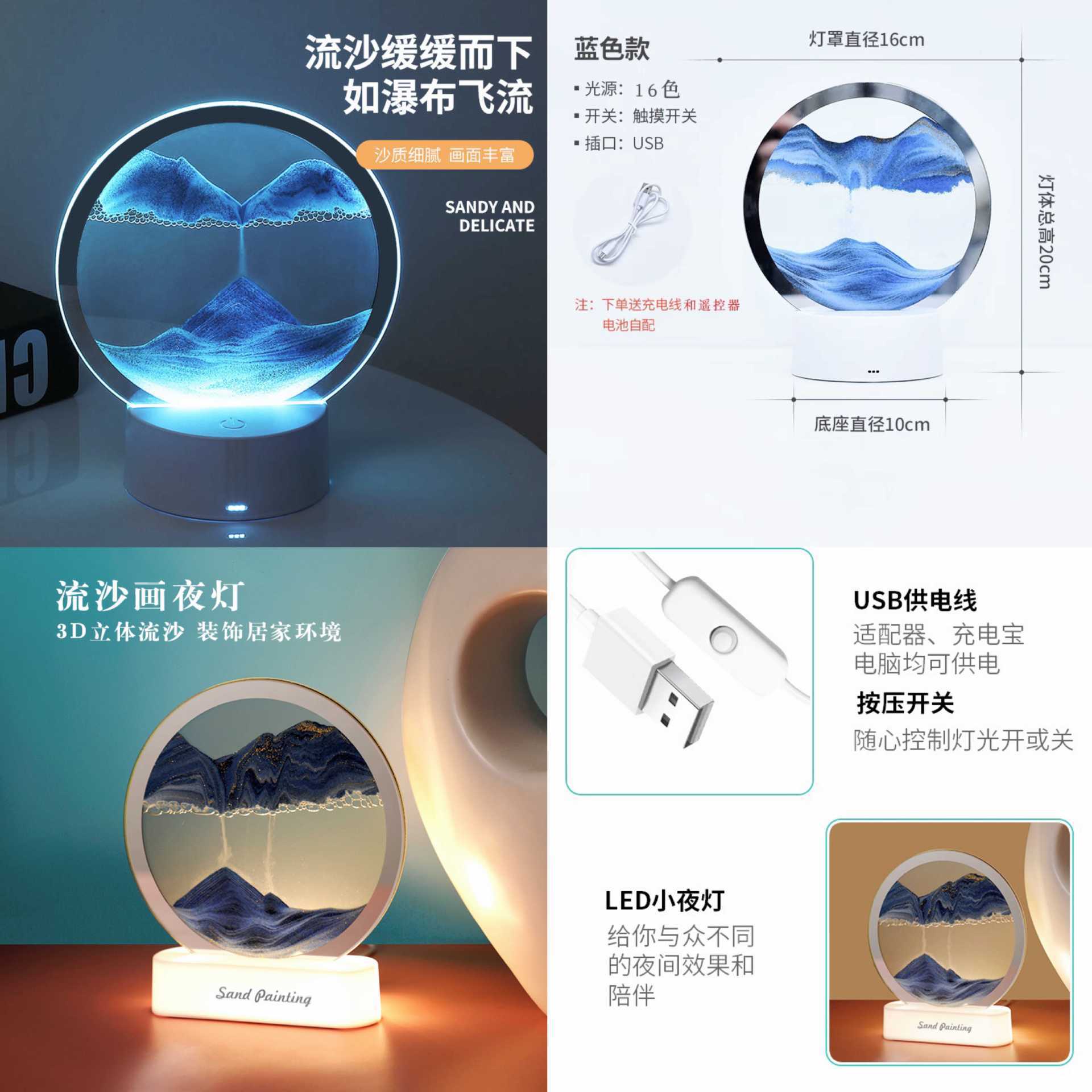 | 尺寸 | 小夜灯USB接口-蓝沙 | 尺寸 | 小夜灯USB接口-黄沙 |