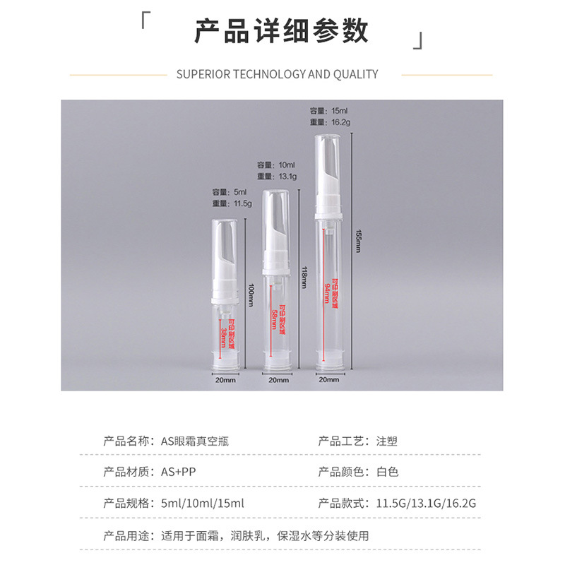 定制乳液分装瓶旅行眼霜分装瓶5ml透明美妆小样瓶按压粉底液瓶子