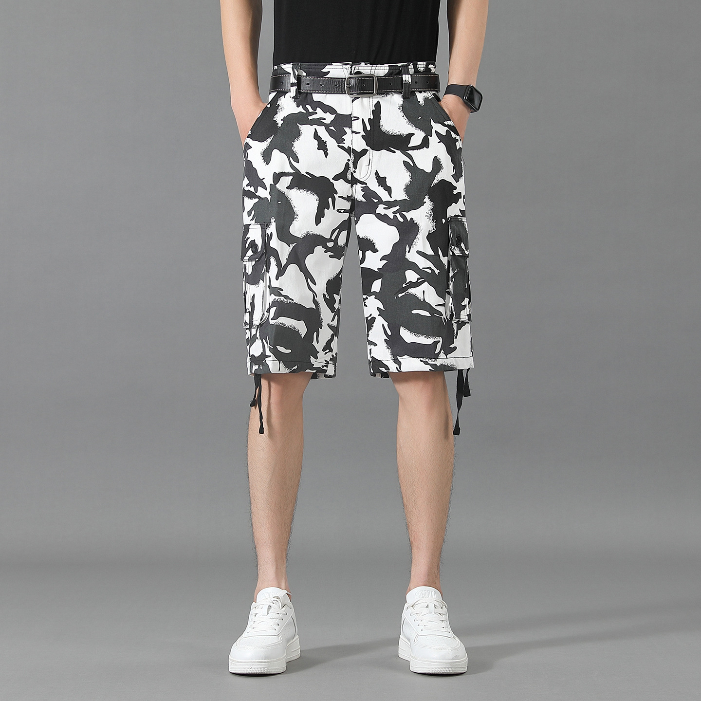 男士迷彩工装短裤2025夏季新款薄款休闲多口袋直筒短裤弹力中裤男