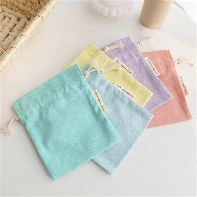 定制新款小号帆布束口袋抽线口红钥匙印章收纳包迷你便携布艺纯色