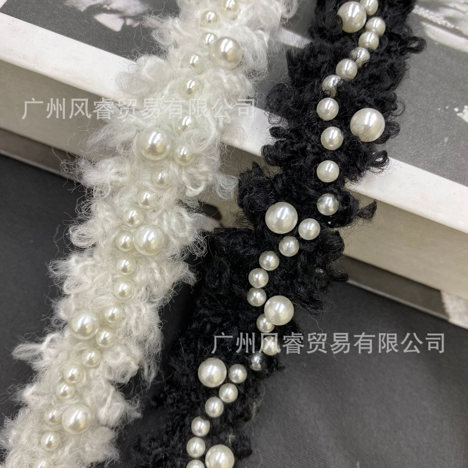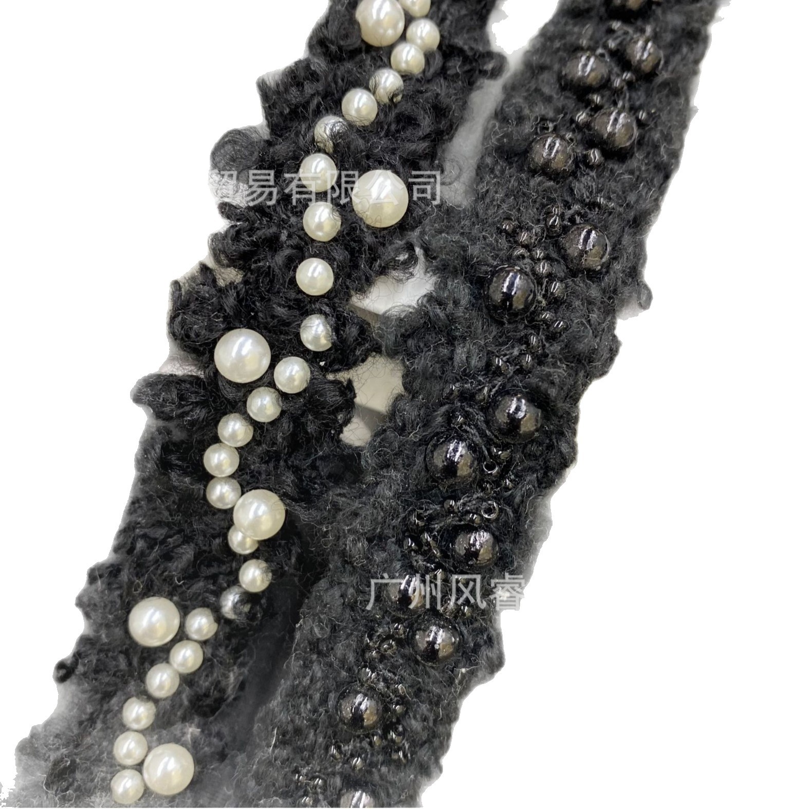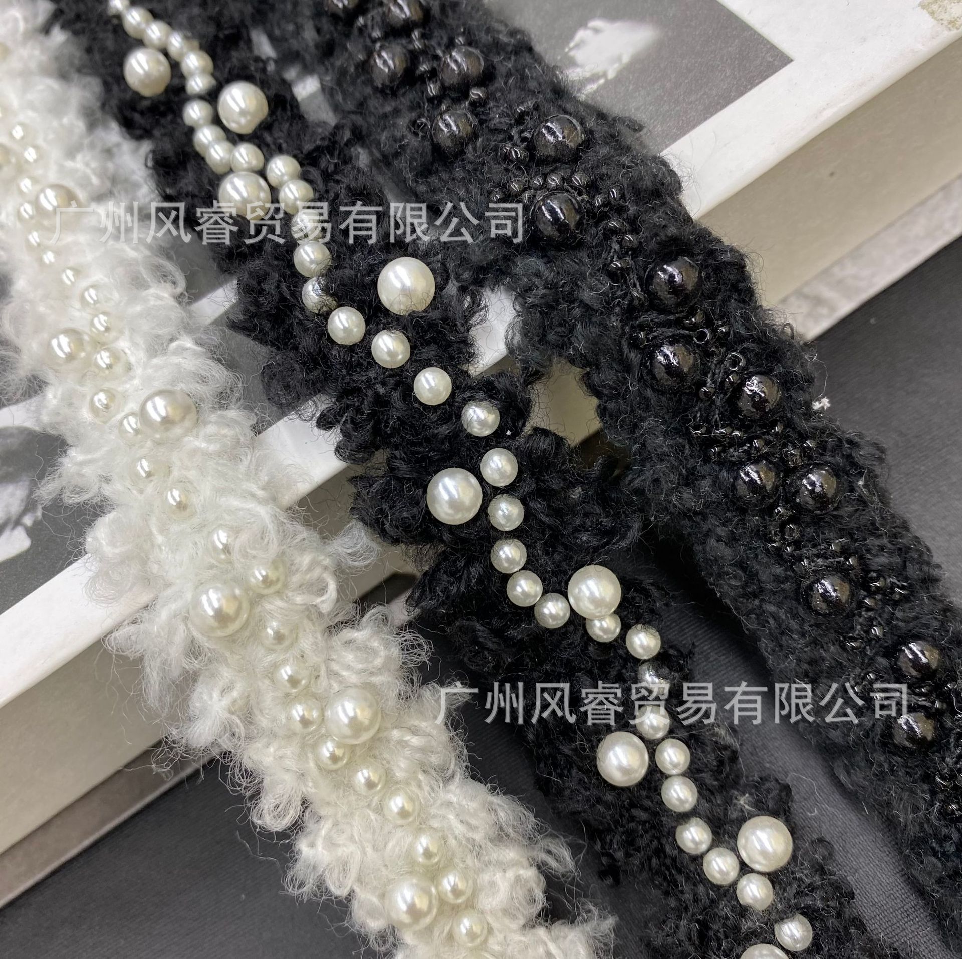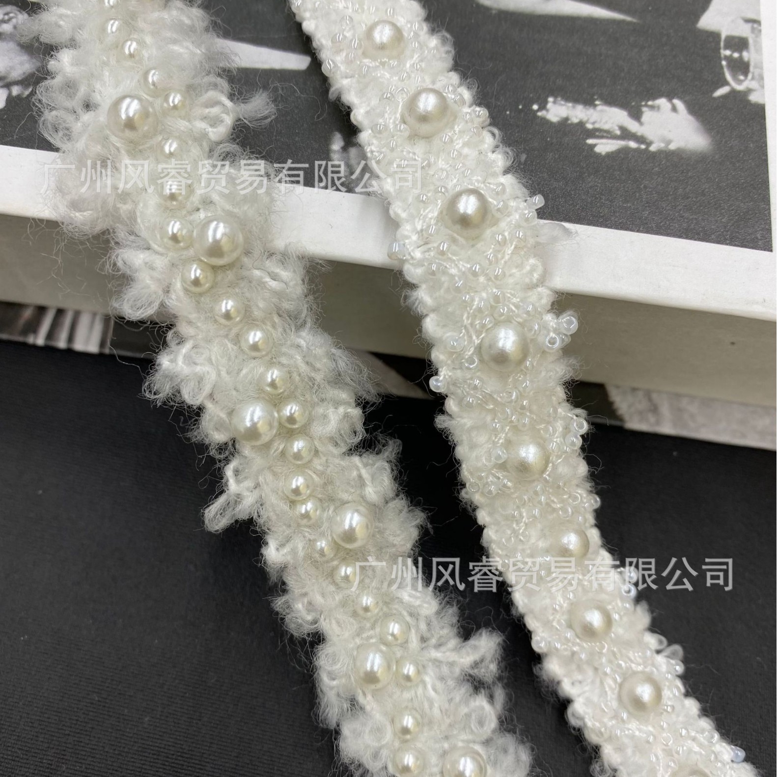 秋冬新款卷毛白色小香风毛线织带花边钉珠小米珠重工DIY服装辅料