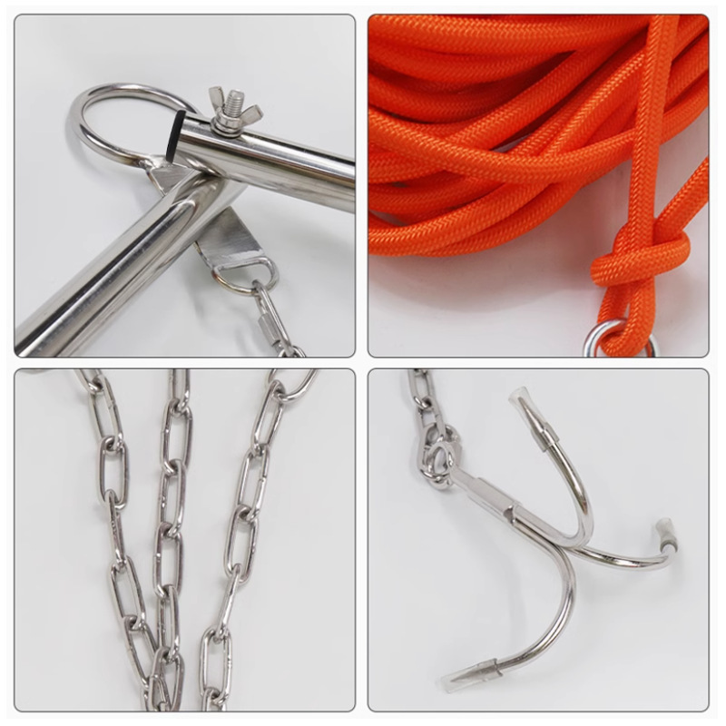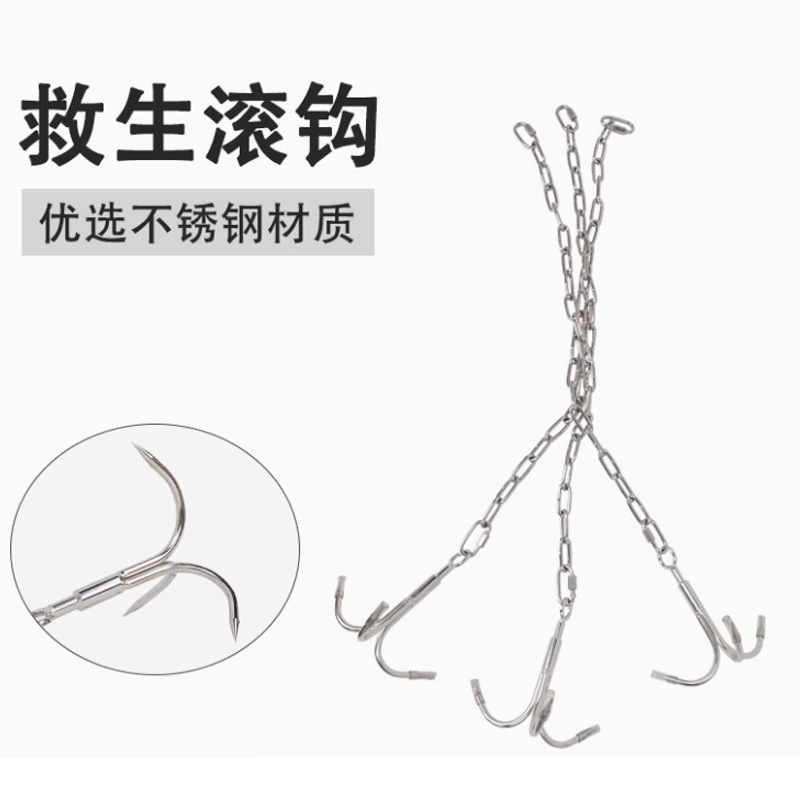 救生滚钩水域救援溺水打捞钩防汛水下清理三爪钩消防应急不锈排钩