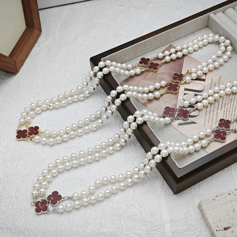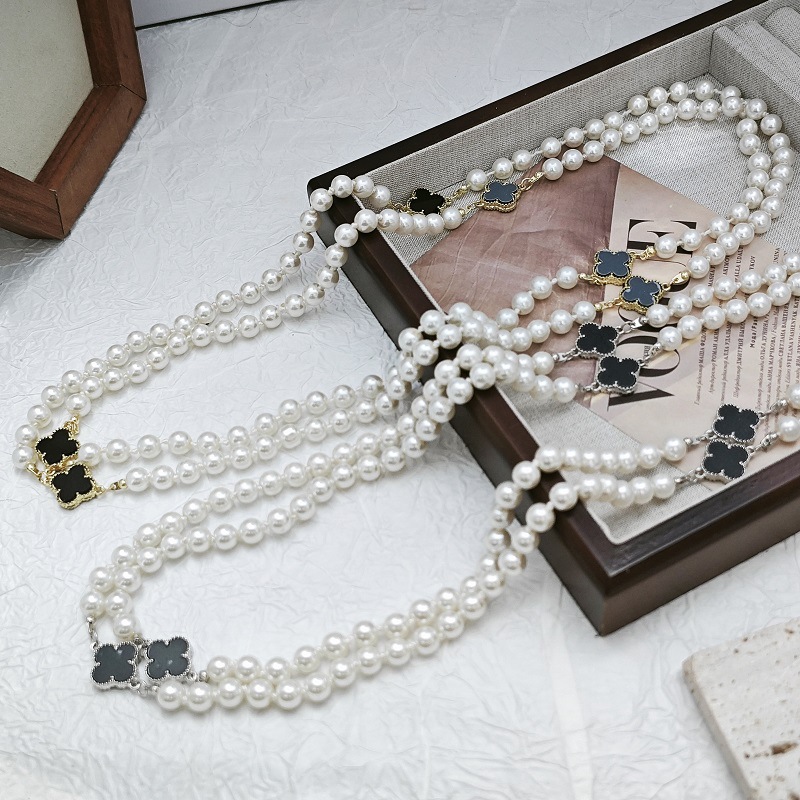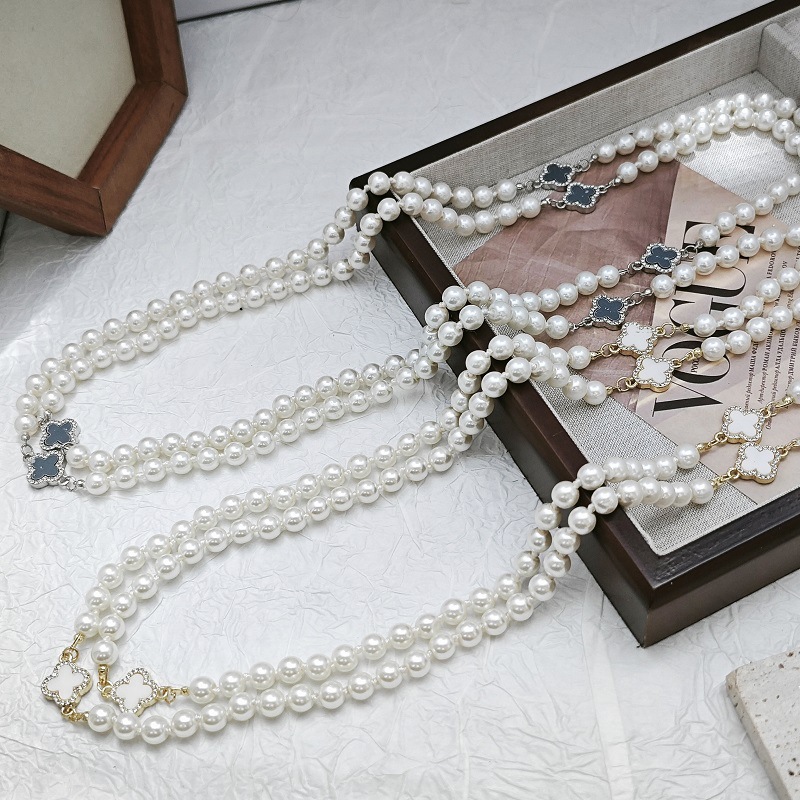 四叶草珍珠项链高级感经典秋冬长款毛衣链项链时尚百搭多层毛衣链