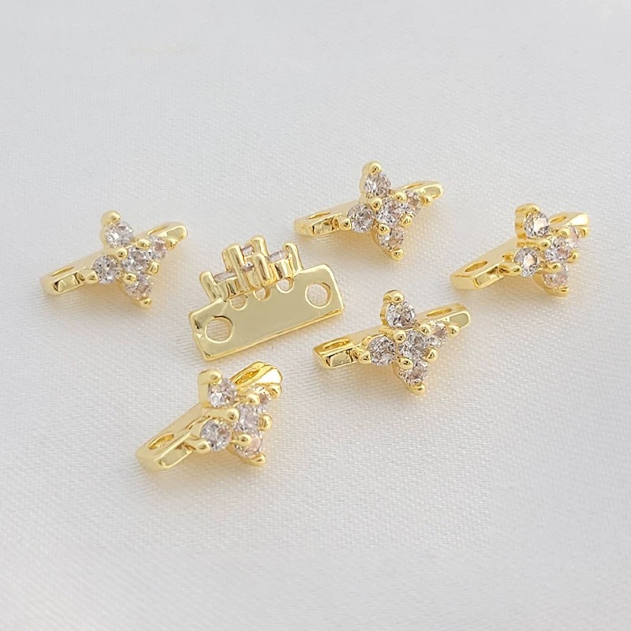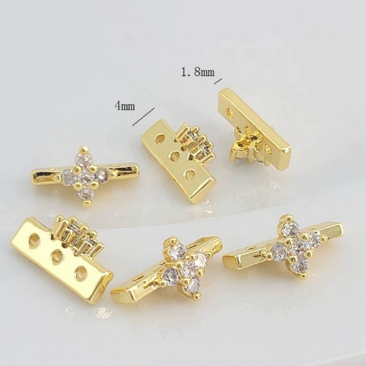 14K包金金白金保色镶钻双排三排手串珍珠隔珠片配件DIY手链项链材