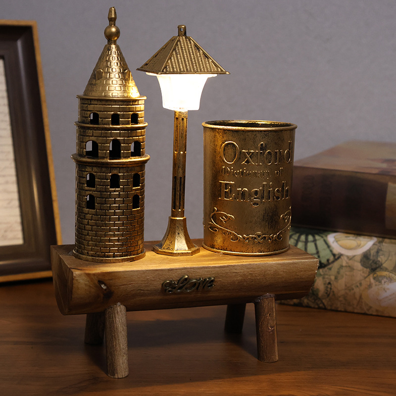创意仿古灯塔小夜灯笔筒 学生礼品双色小夜灯摆件批发