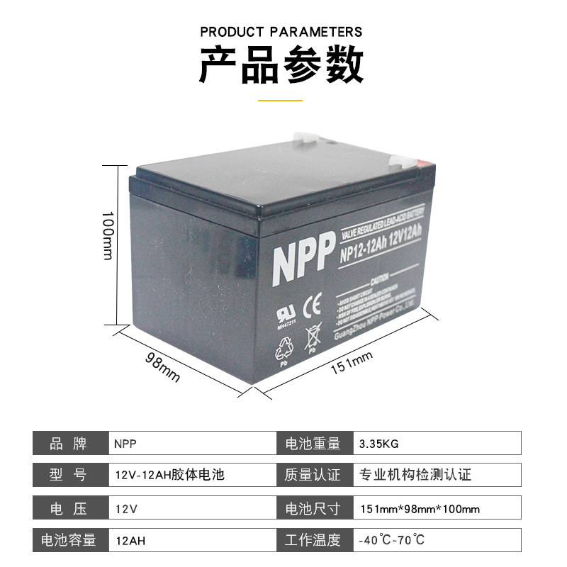 NPP耐普蓄电池NP12-5电梯照明小型仪器设备12V5AH 4AHUPS电源包邮
