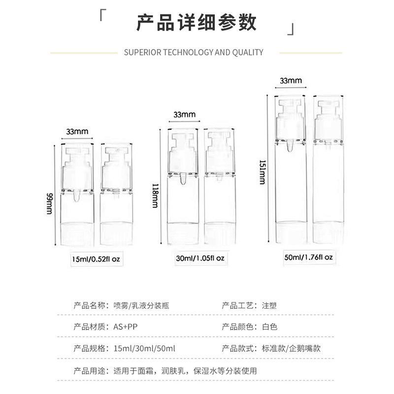 | 用途 | 美妆日化包装 | 规格 | 15ml平板喷雾真空瓶 |