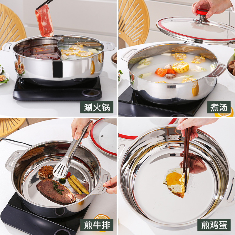 颜色 | 32cm【三层钢清汤锅-带盖】 | | 颜色 | 28cm【三层钢鸳鸯锅-带盖】 |