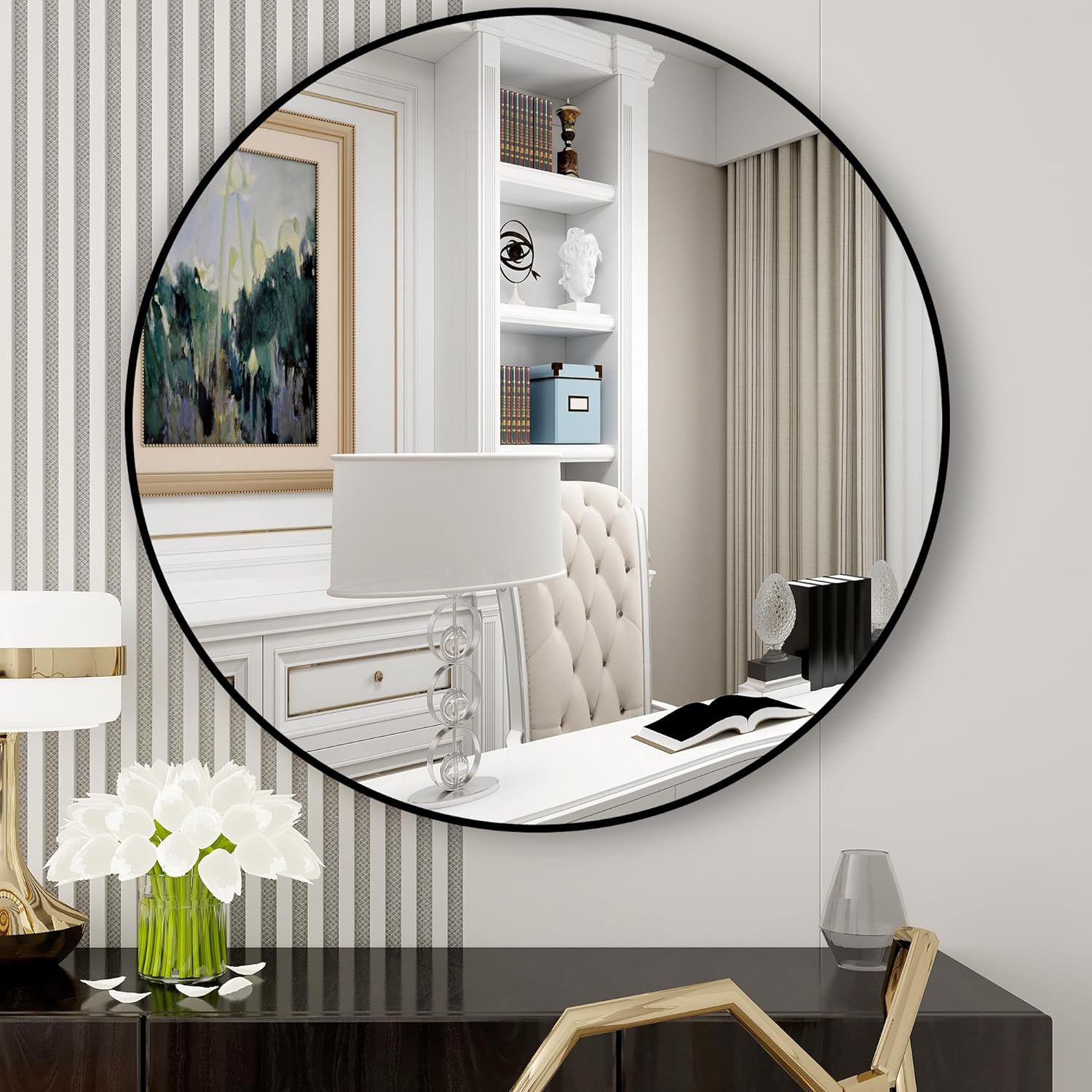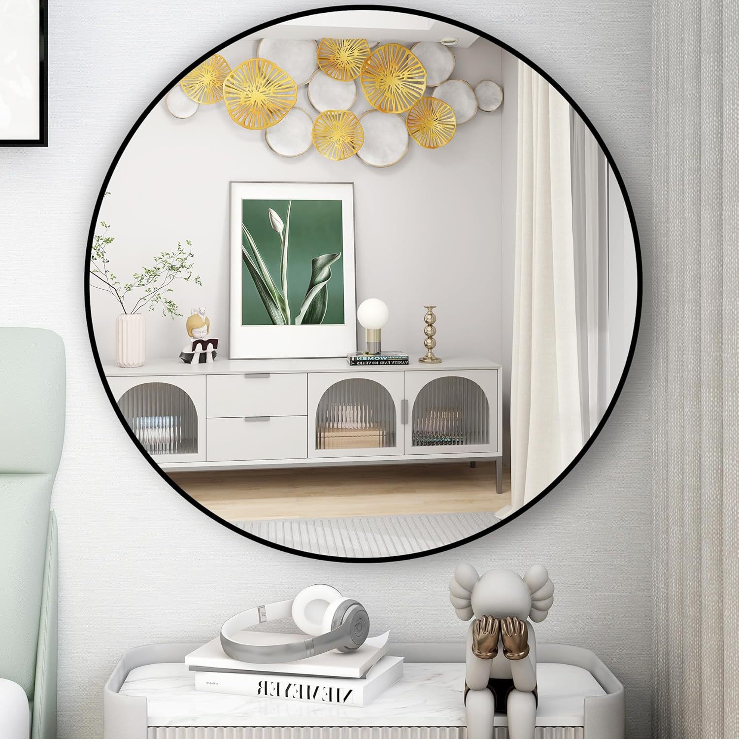 北欧卫生间浴室镜铝合金圆框化妆镜洗手间卫浴壁挂耐用防爆镜