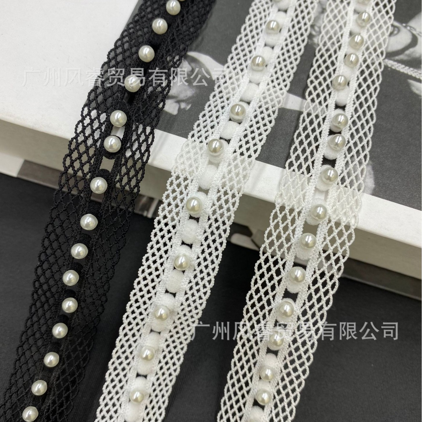 新款现货黑白蕾丝织带珍珠手工DIY衣服装饰百搭配饰花边辅料