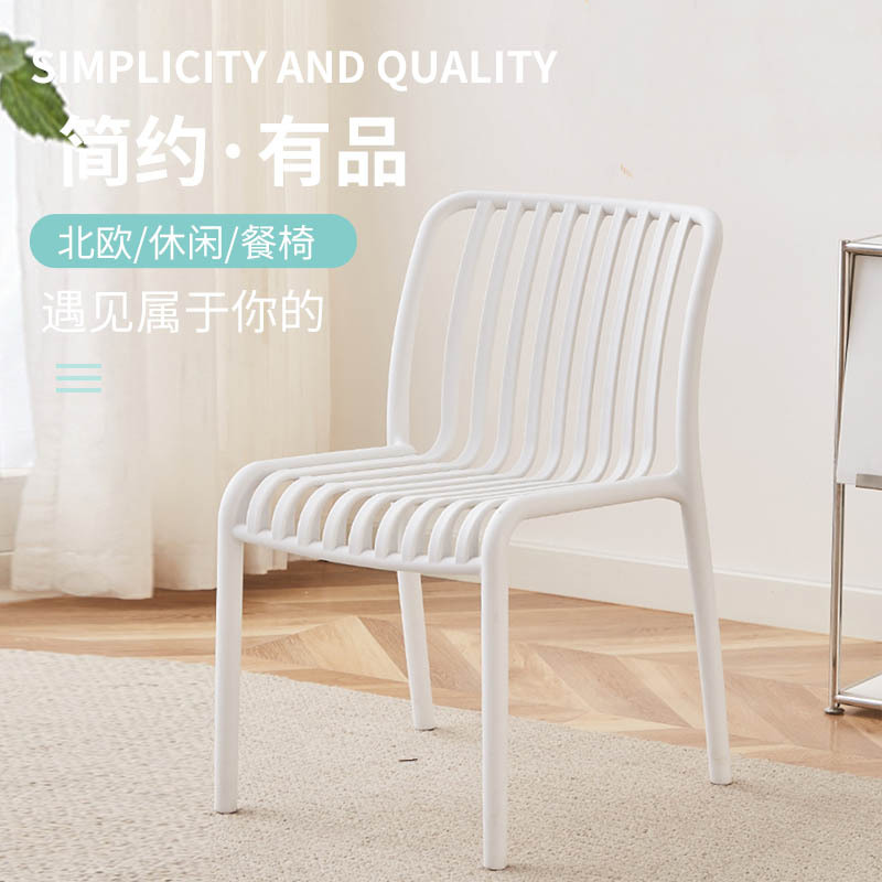 简约竖条餐椅家用塑料椅可叠放靠背休闲椅阳台椅户外大排档椅子