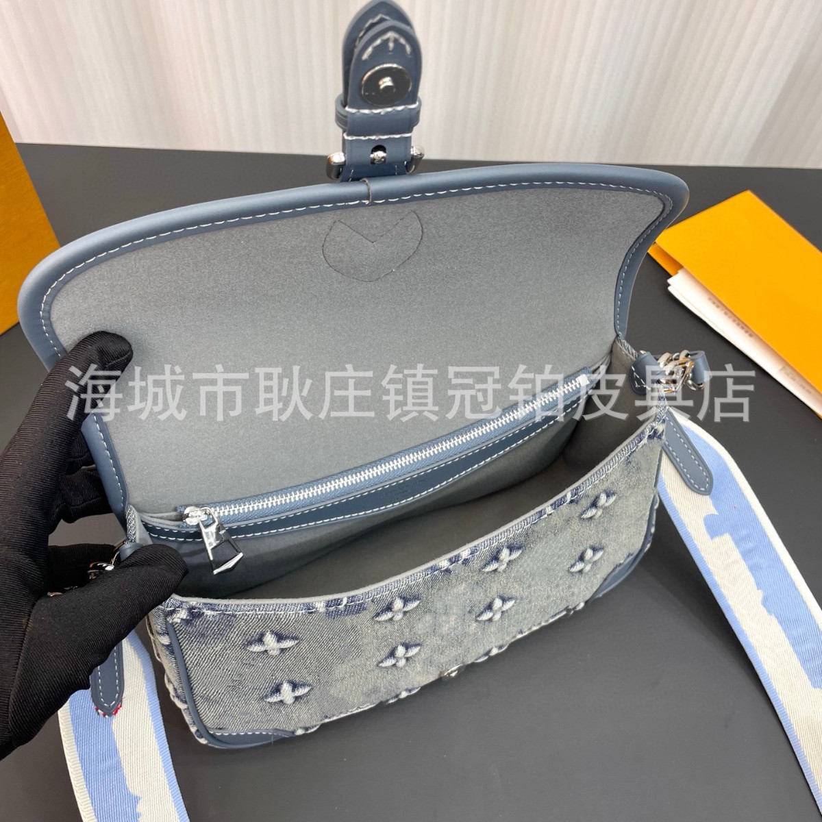 抖快Y头供货包包新款女士斜挎包单肩包腋下包马户牛仔法棍包代发
