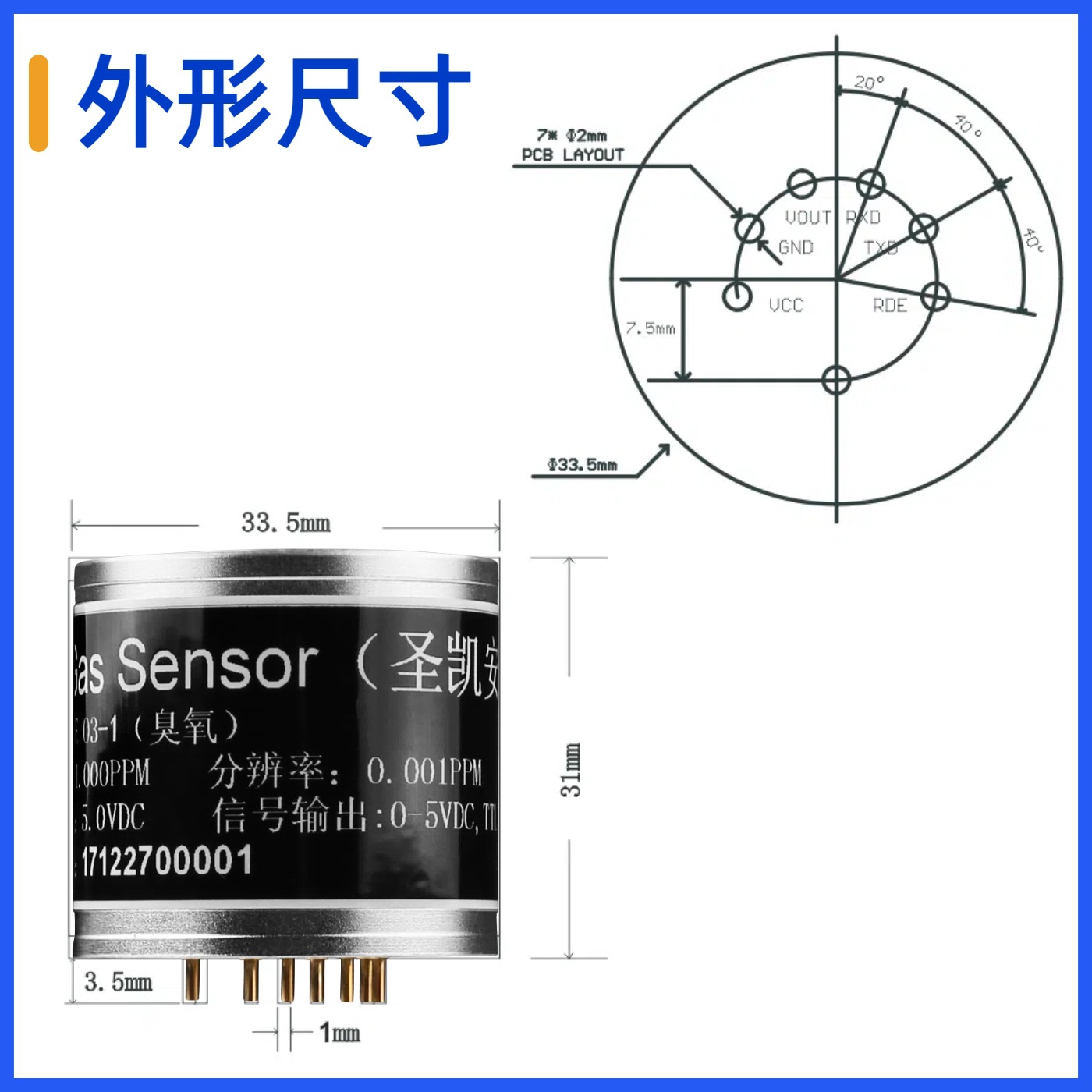 规格O3臭氧传感器模组