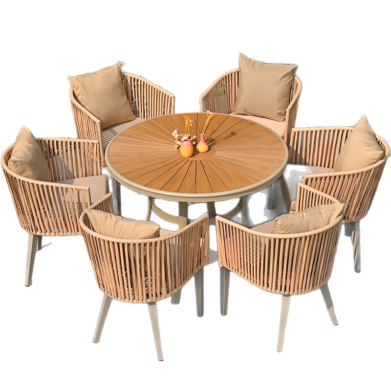 户外庭院桌椅室外休闲塑木餐桌椅组合露天阳台院子花园藤编椅直销