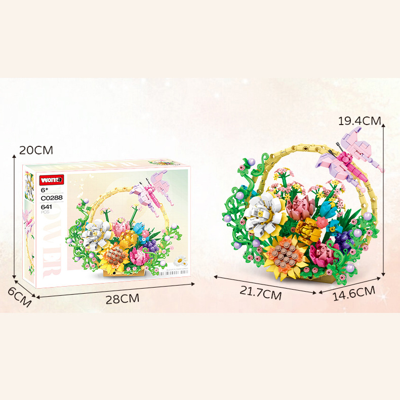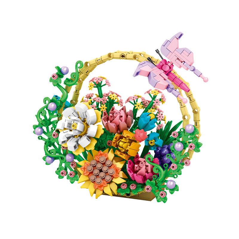 跨境小颗粒积木花拼插鲜花系列 创意花篮拼装家居桌面摆件玩具