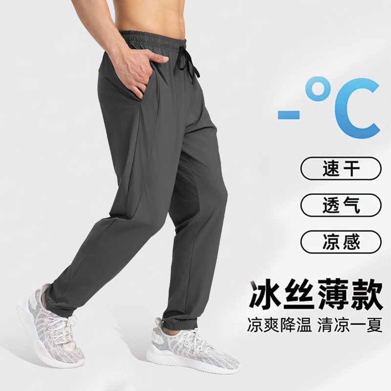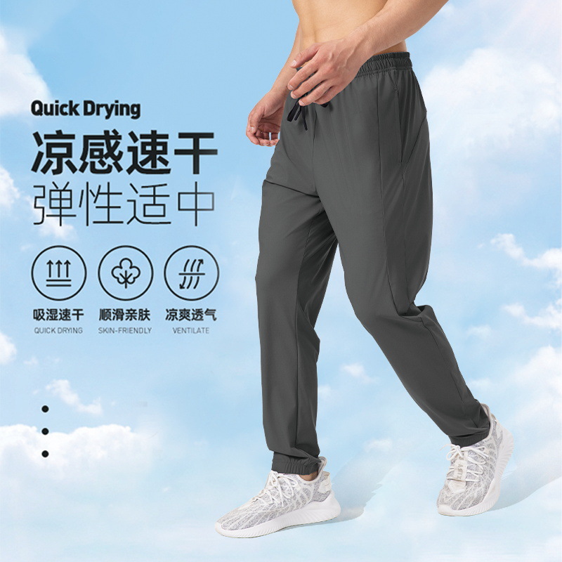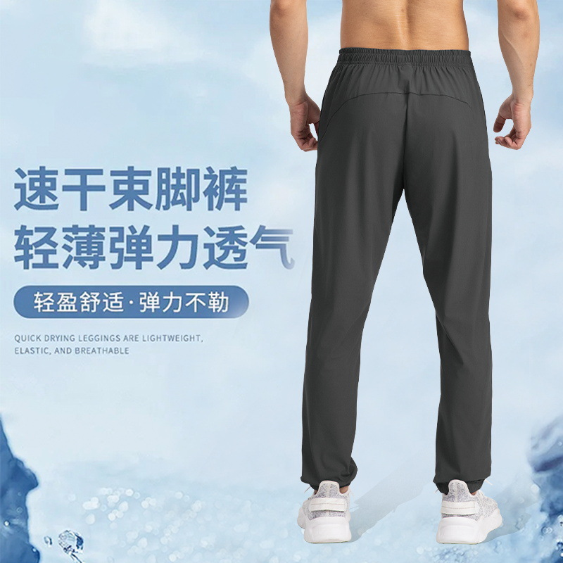 2025年春夏季新款跑步长裤男宽松速干冰丝收脚裤黑色休闲运动百搭
