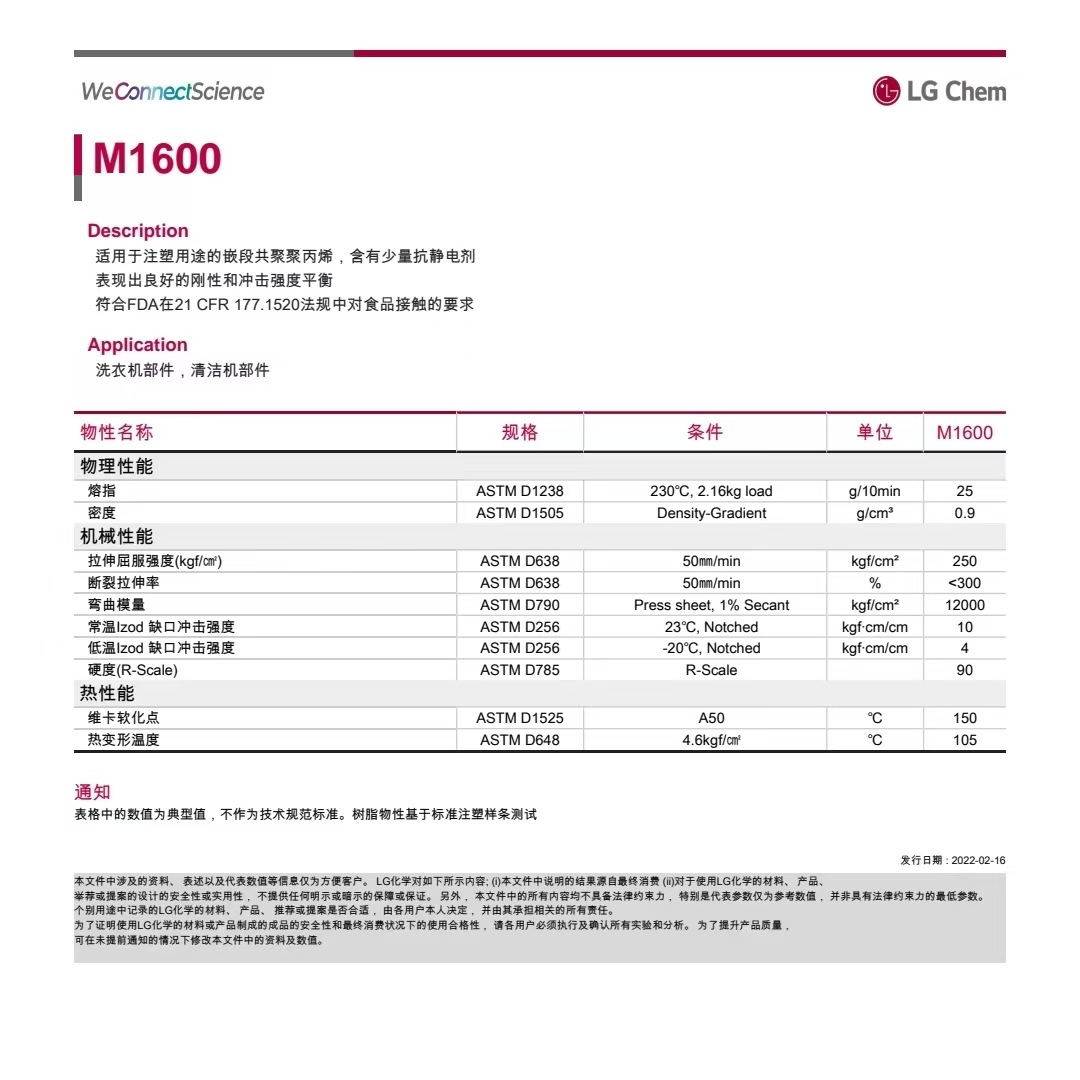 规格型号PP 韩国LG M1600