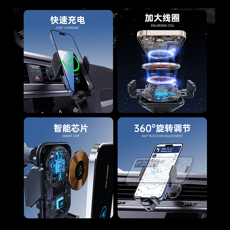 跨境磁吸车载手机支架汽车导航无线充电器66W快充适用所有手机