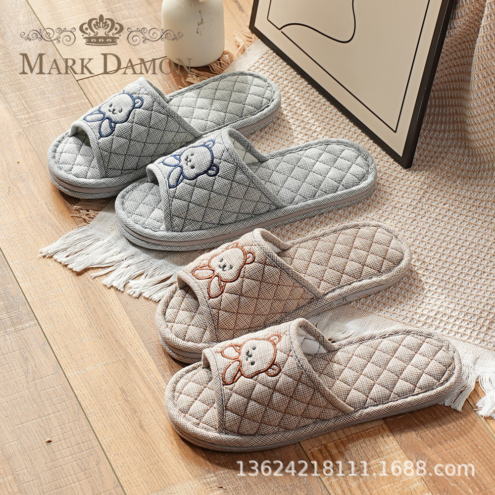 跨境外单可爱熊三层加厚纯棉布布底居家室内木地板拖鞋男女款拖鞋