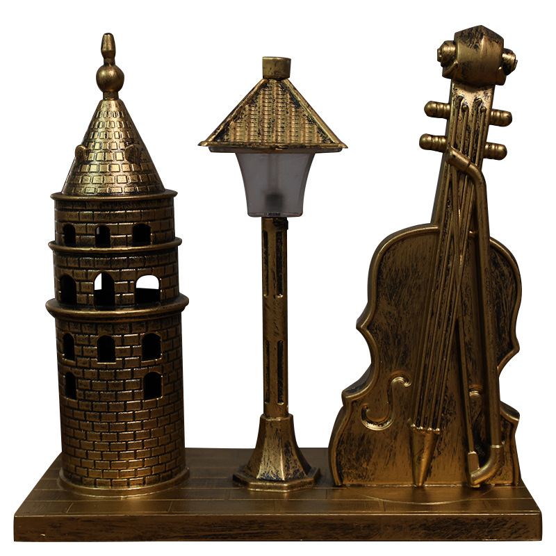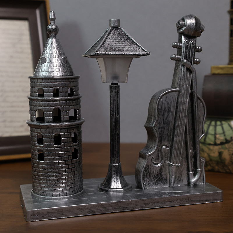创意学生礼物复古小提琴少女塔摆件家居装饰摆件小夜灯纪念礼物