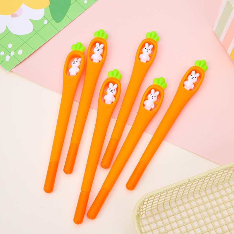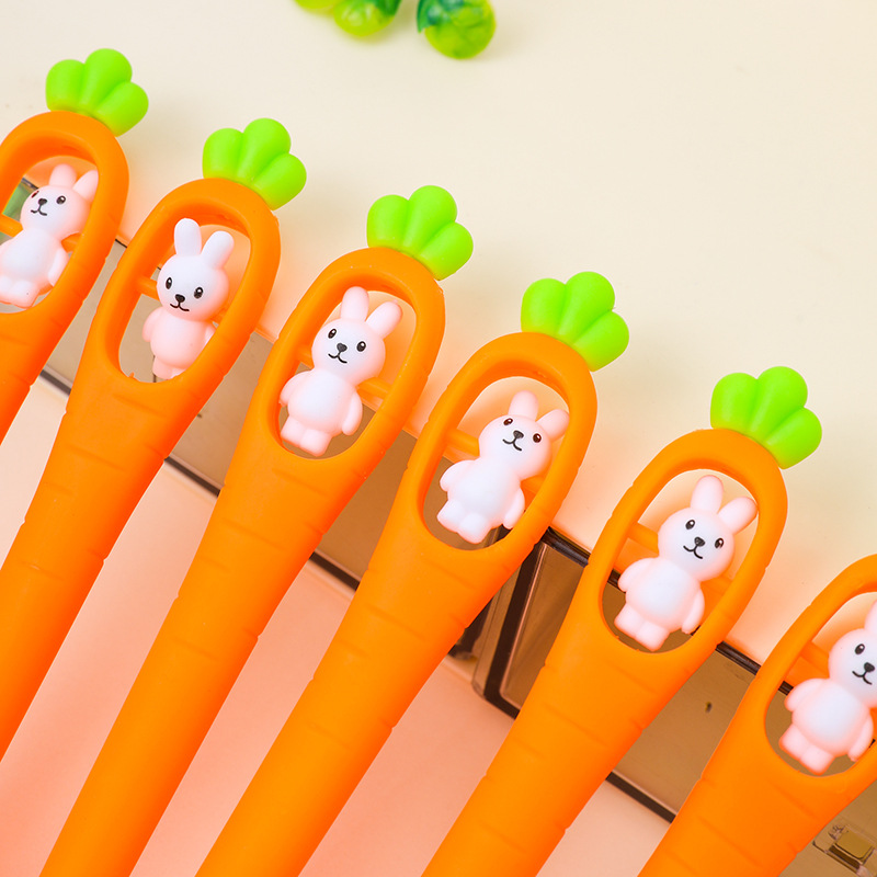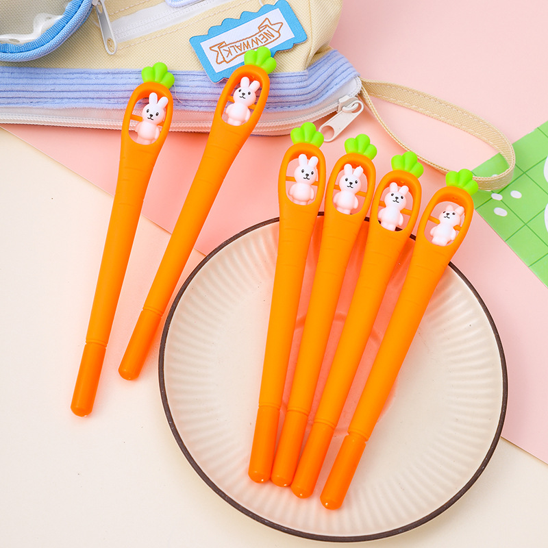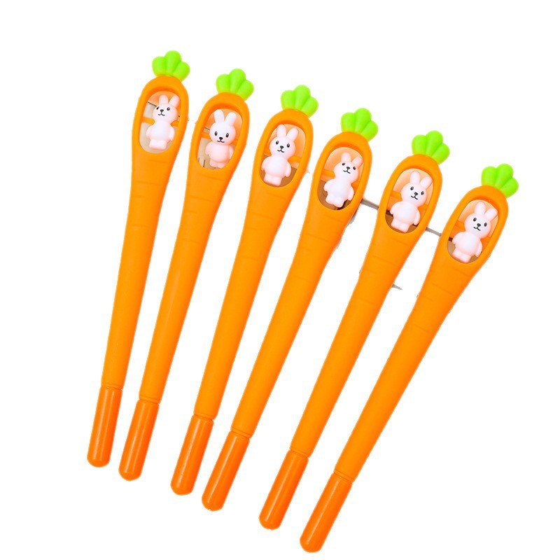 创意胡萝卜旋转兔子中性笔签字水性碳素中性笔学生奖品水笔胡萝卜
