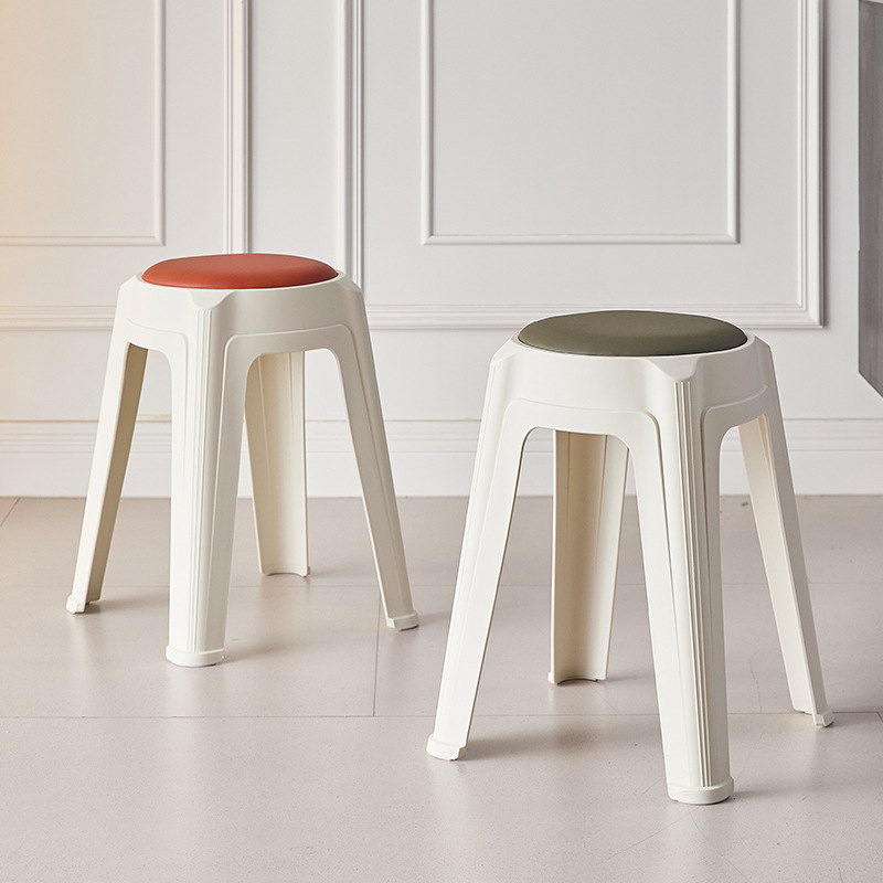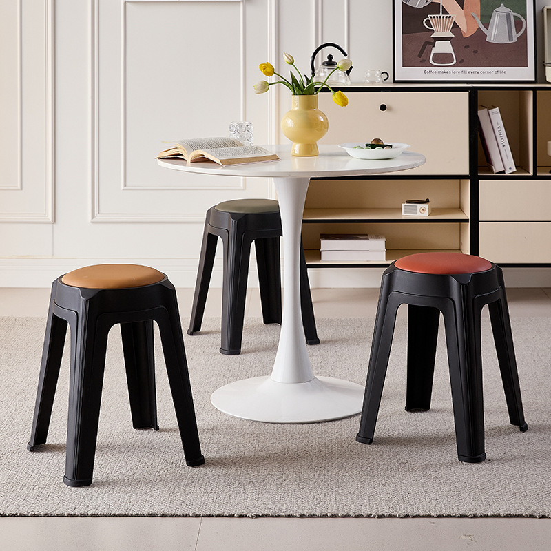 家用软包凳子加厚休闲塑料圆凳餐桌可摞叠放板凳洽谈会议凳客厅