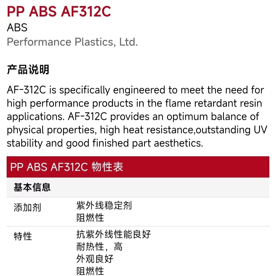 原产国/地区ABS LG惠州 AF-312C 阻燃级