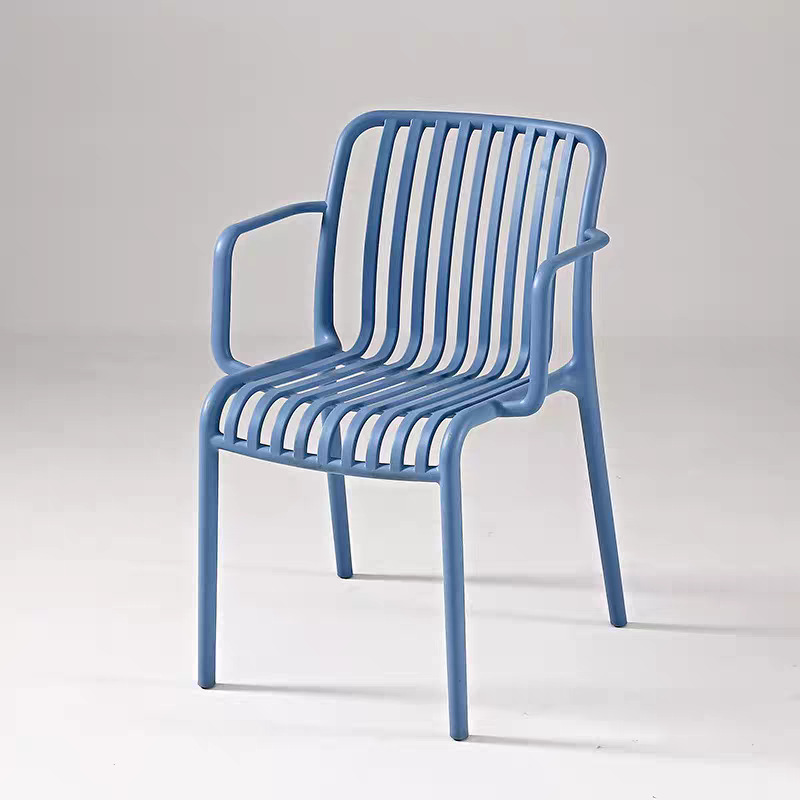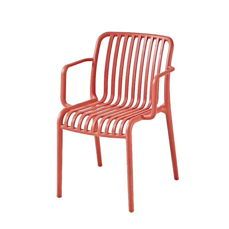 简约竖条餐椅现代家用塑料椅可叠放扶手椅休闲椅阳台户外沙滩椅子