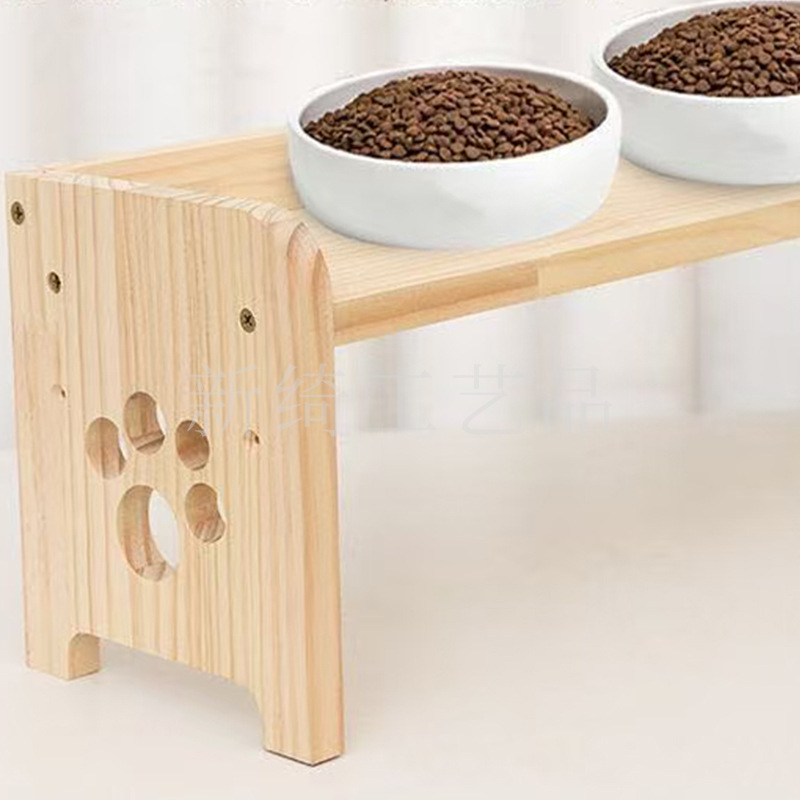 新款宠物木桌宠物餐桌猫咪狗狗进食可调节餐桌宠物小木桌厂家