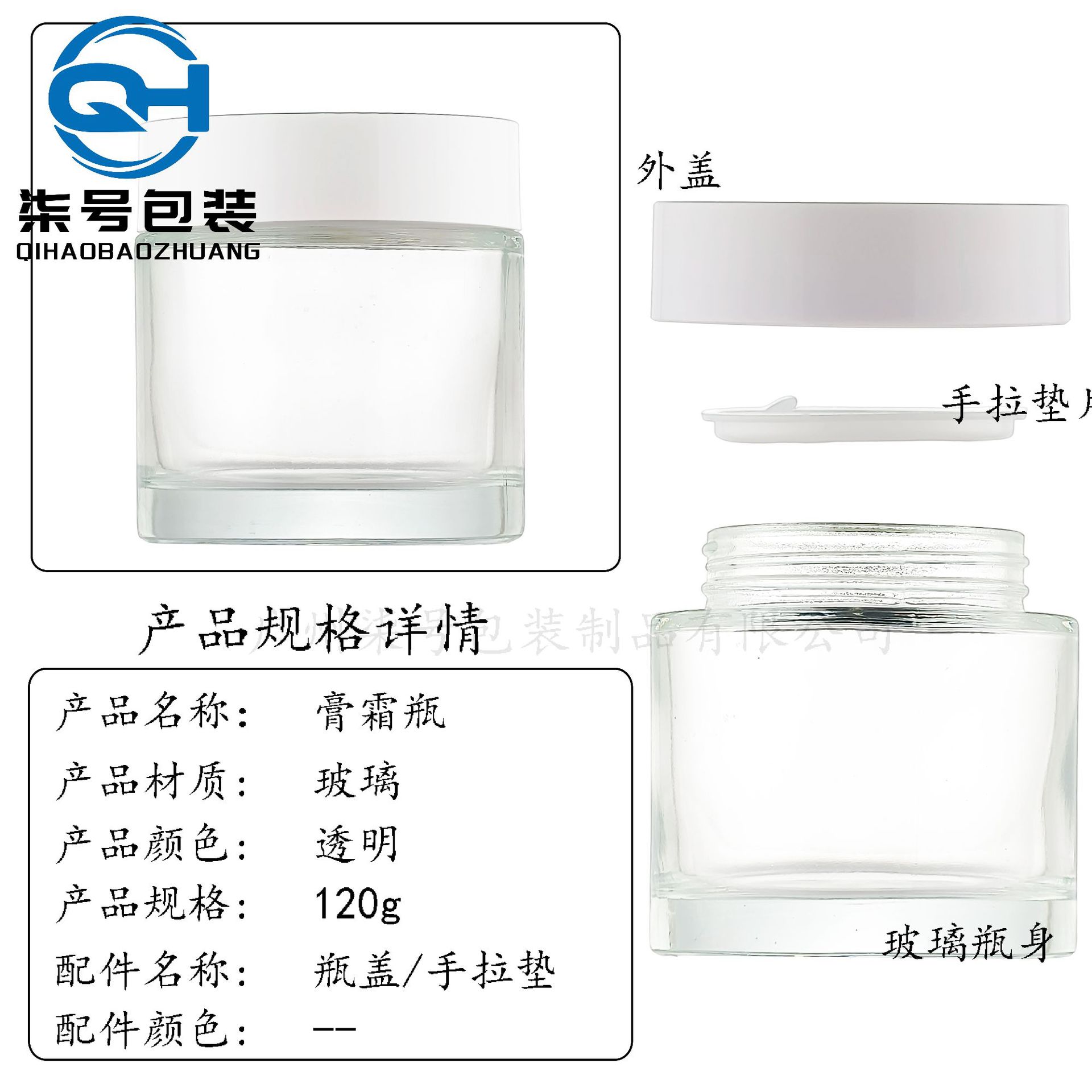 120g面霜瓶带盖润肤霜分装瓶子面膜罐化妆品空瓶直圆玻璃膏霜瓶