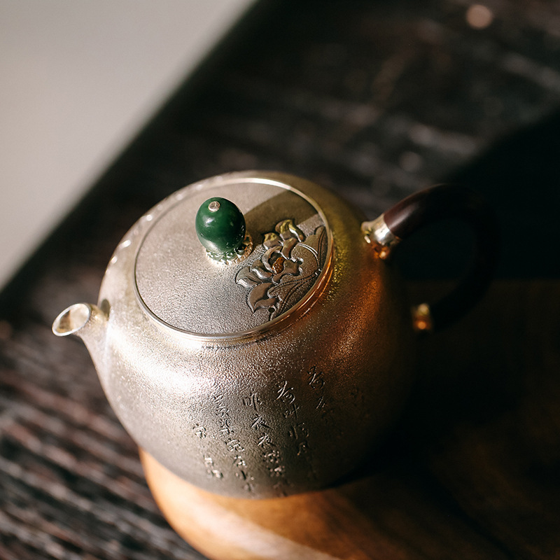产品上市时间 | 2025春 | | 规格 | 浮雕莲花刻绘镶金银壶 |
