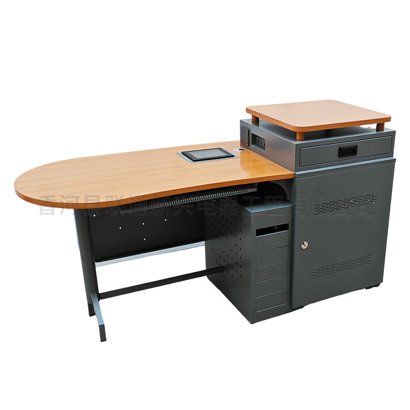 多媒体讲台智能电动升降讲台钢制教学培训老师讲课桌带柜子演讲台