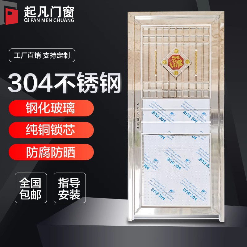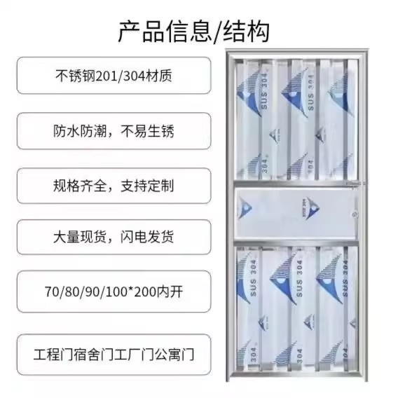 304不锈钢门厕所门出租房门阳台门工程门不锈钢单门平开门简易门