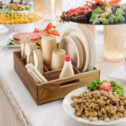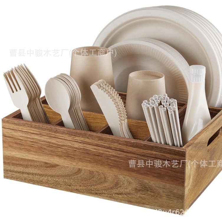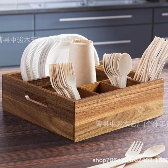 跨境实木家用收纳盒客厅桌面调味瓶整理摆放盒餐厅餐具木制储存盒