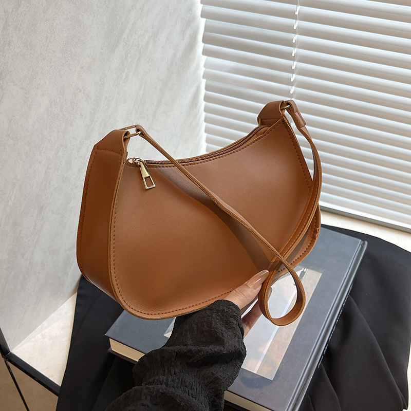 新款小众设计流行时尚腋下包韩版斜跨纯色单肩包温柔简约新月包