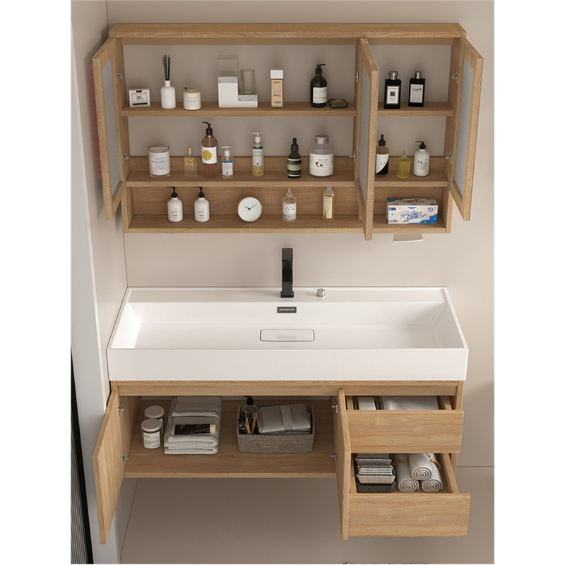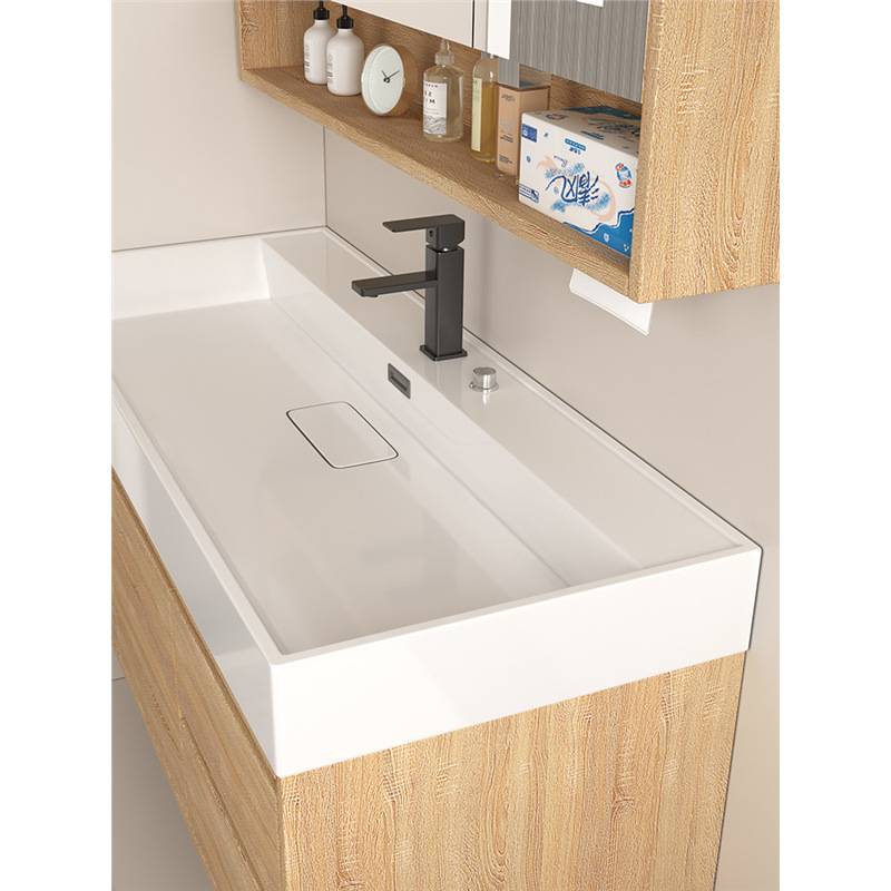 大盆海洋盆双龙头浴室柜原木黄色卫生间洗脸盆台控隐藏下水卫浴柜