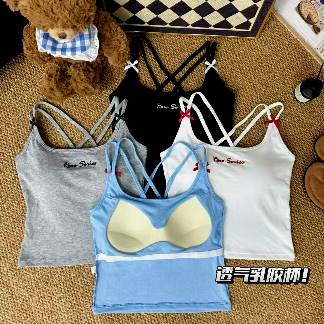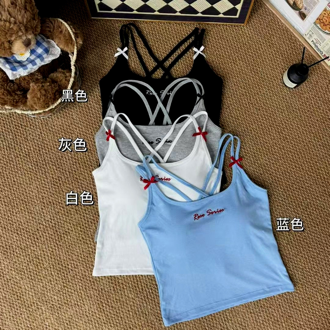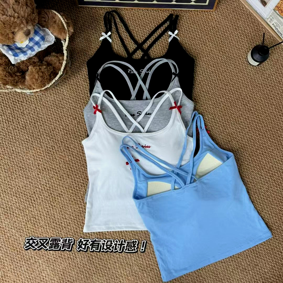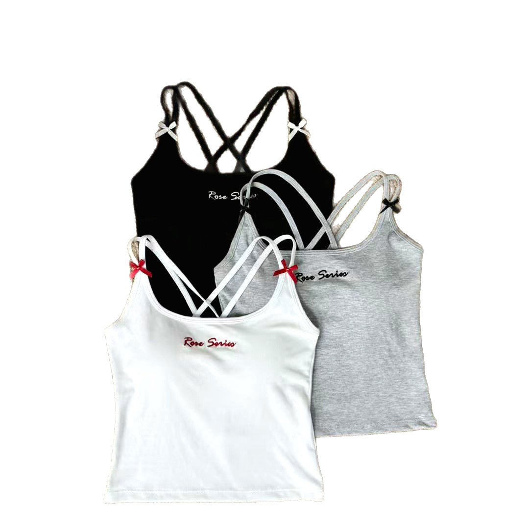 纯欲刺绣吊带美背带胸垫双肩带独特蝴蝶结外穿性感修身打底上衣女
