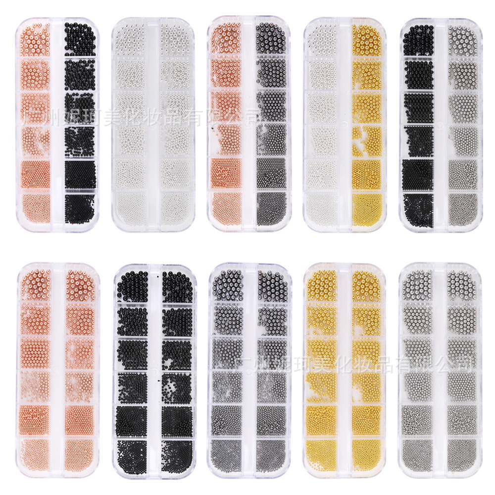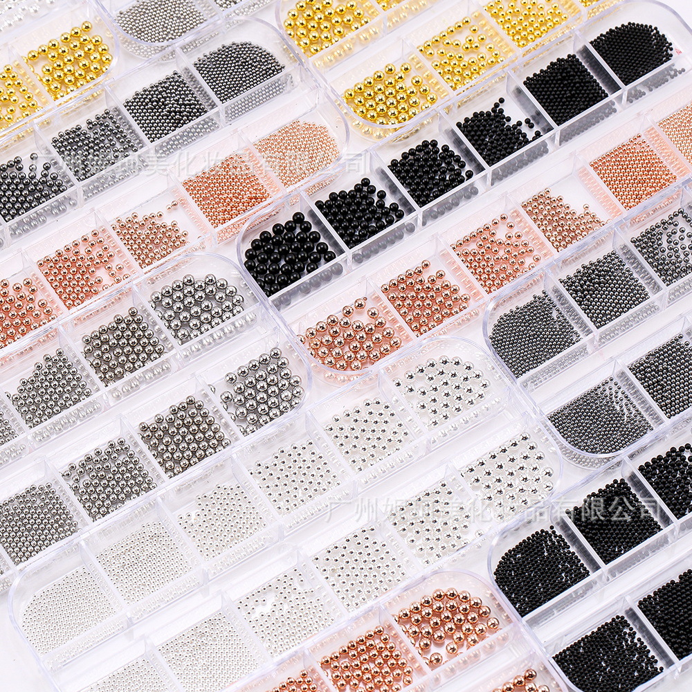 美甲饰品金银钢珠混装金色银色玫瑰金属圆形钢珠大小混装美甲盒装